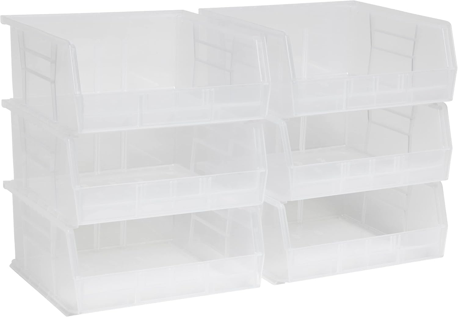 Akro-Mils 30235 AkroBins Plastic Storage Bins, Space-Saving Stackable Bins for Garage, Pantry, Craft Organization, 11-" x 11-" x 5-", Clear, 6-Pack