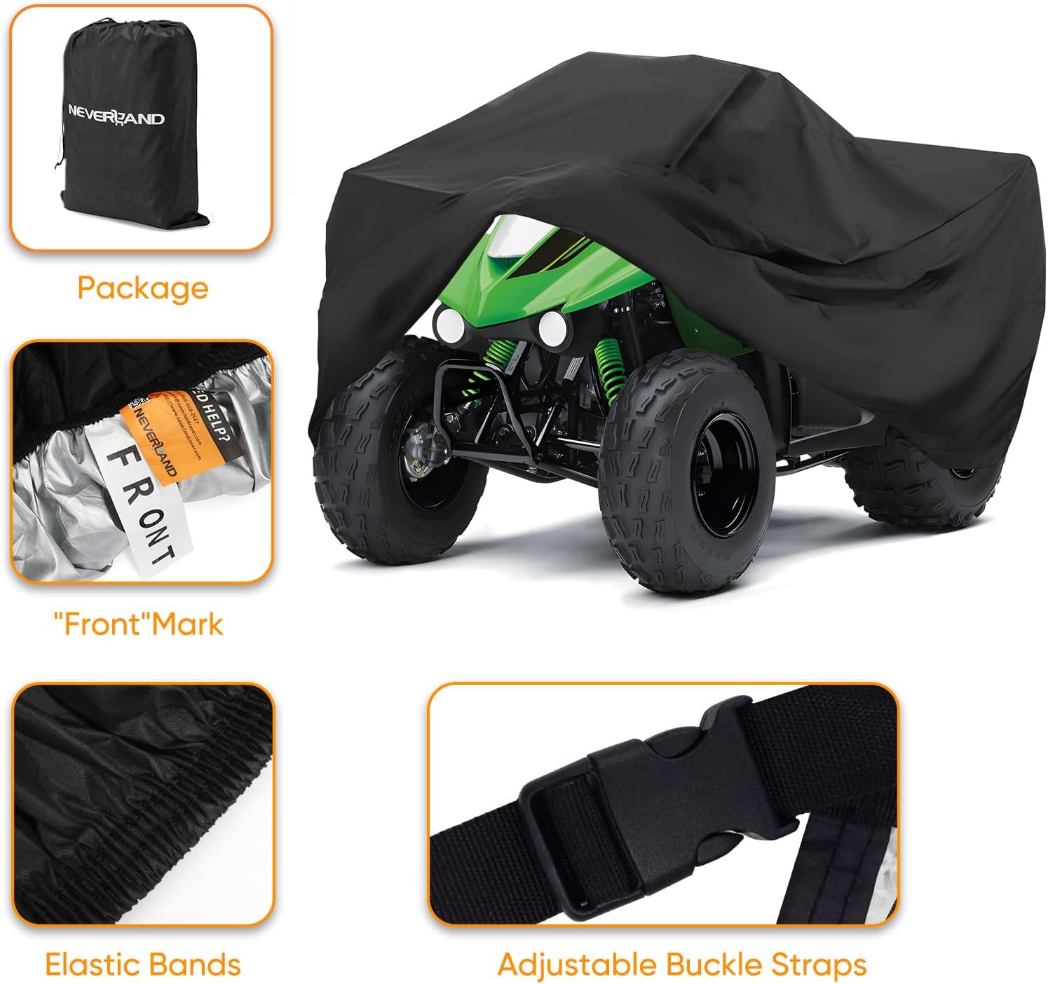 - 【ELASTIC DESIGN】Our quad cover with elastic base wraps around tires can provide a good fit to your quad, do not worry about wind blowing away the cover; Protect your powersports vehicle's surface from being scratched by sharp objects