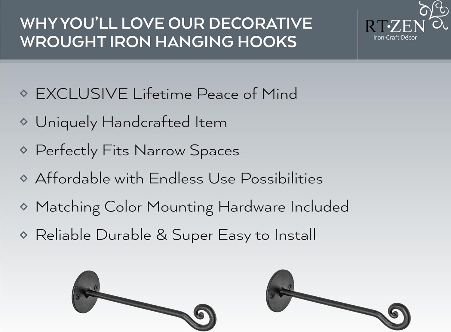 - HEAVY DUTY DURABLE UNIQUE ART PIECE - Double Front Welding Galvanized with Zinc & Powder Coating for Strong Rust Resistant Hook. Cast & Wrought Iron Steel Built to Last. Mounting Screws & Black Hardware Included