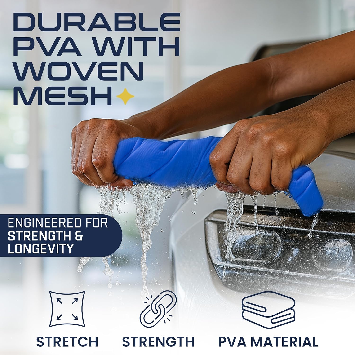- PREMIUM MATERIAL - Our ultra-absorbent PVA shammy holds several times its weight in water for quick, efficient drying. Its soft, durable texture is scratch-less and streak-less, making it ideal for car & truck paint, boats, & more. Crafted from high-quality PVA, these lint-free towels ensure a pristine, shiny finish without harming your vehicle.
