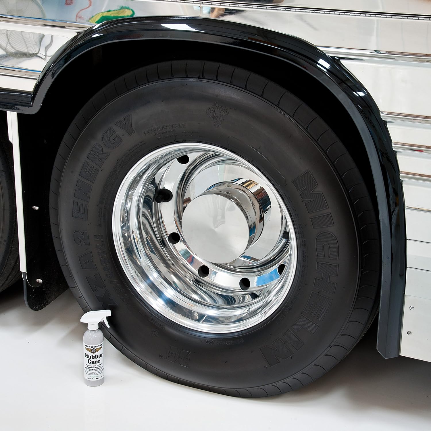 - When used as directed, Rubber Care will leave a beautiful dark black satin/matte look that is dry to the touch and will not attract dirt and brake dust. This means the rubber will stay cleaner longer and be easier to keep clean. SEE EXAMPLE PHOTOS ON THE LEFT