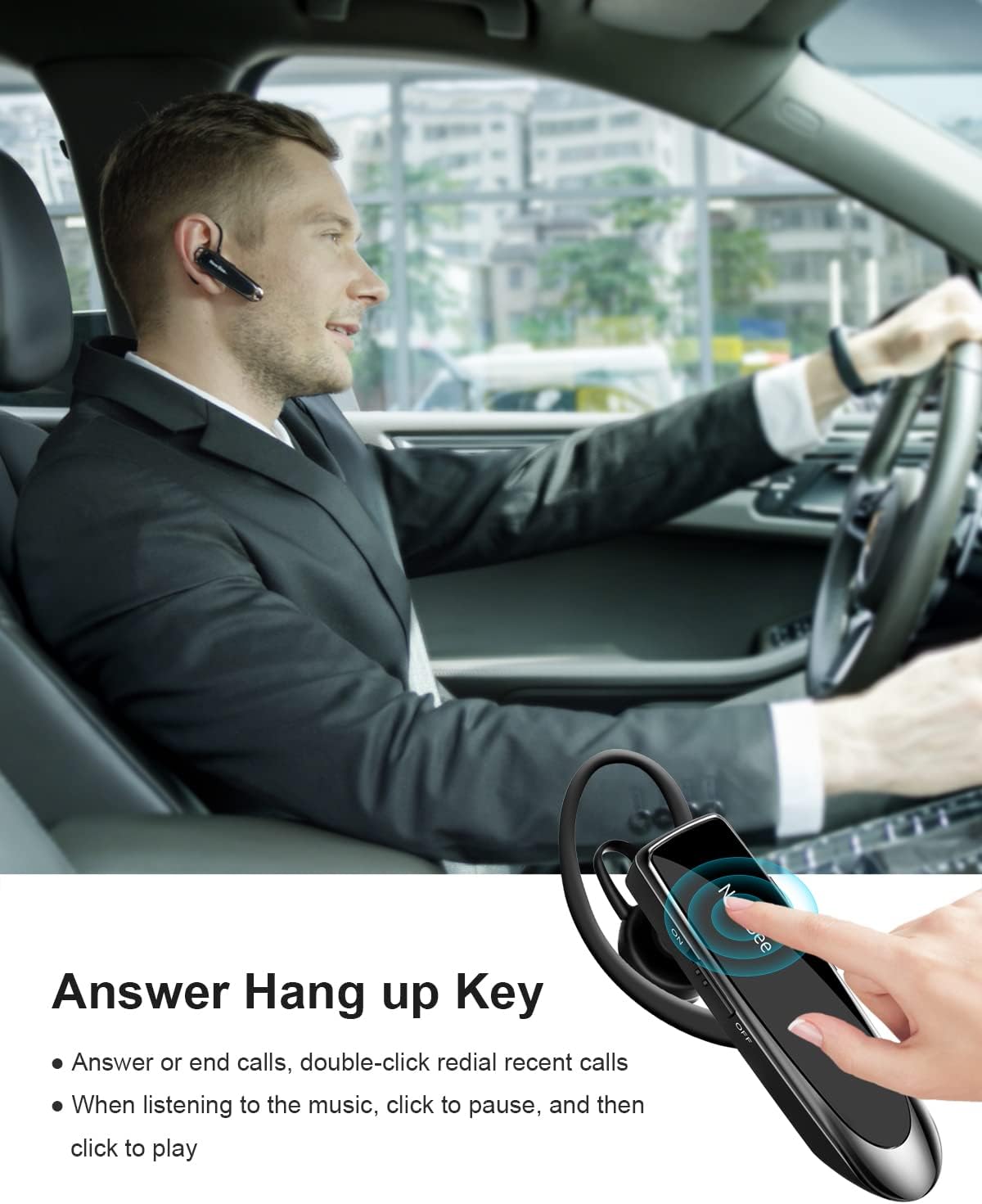 - [Comfortable Wearing Design] Lightweight New Bee B41 bluetooth headset (12g) does not cause any burden to your ears, thus providing lasting wearing comfort, good for drivers or businessmen; 360¡ãadjustable earbud fits perfectly for your left or right ear. Three optional ear tips included; small, medium, and large, choose the most comfortable earbuds to fit in either ear.