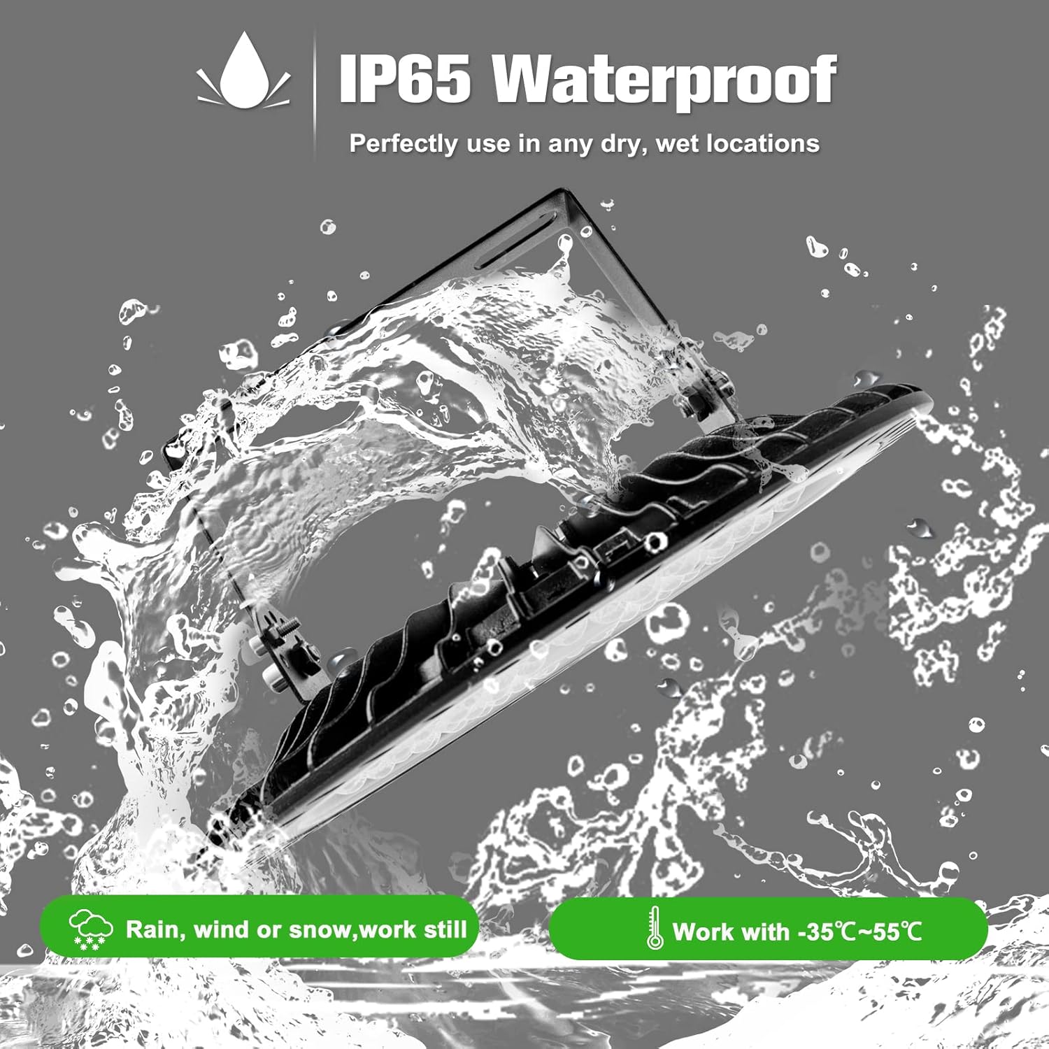 - 【20000LM High Brightness】6500K daylight white high bay light, 200W 20000LM provides enough brightness at night. No strobe light failure low. IP65 waterproof grade, ideal for home, commercial or Industrial use. Fit for garage, yard, warehouse, supermarkets, furniture Store, etc.
