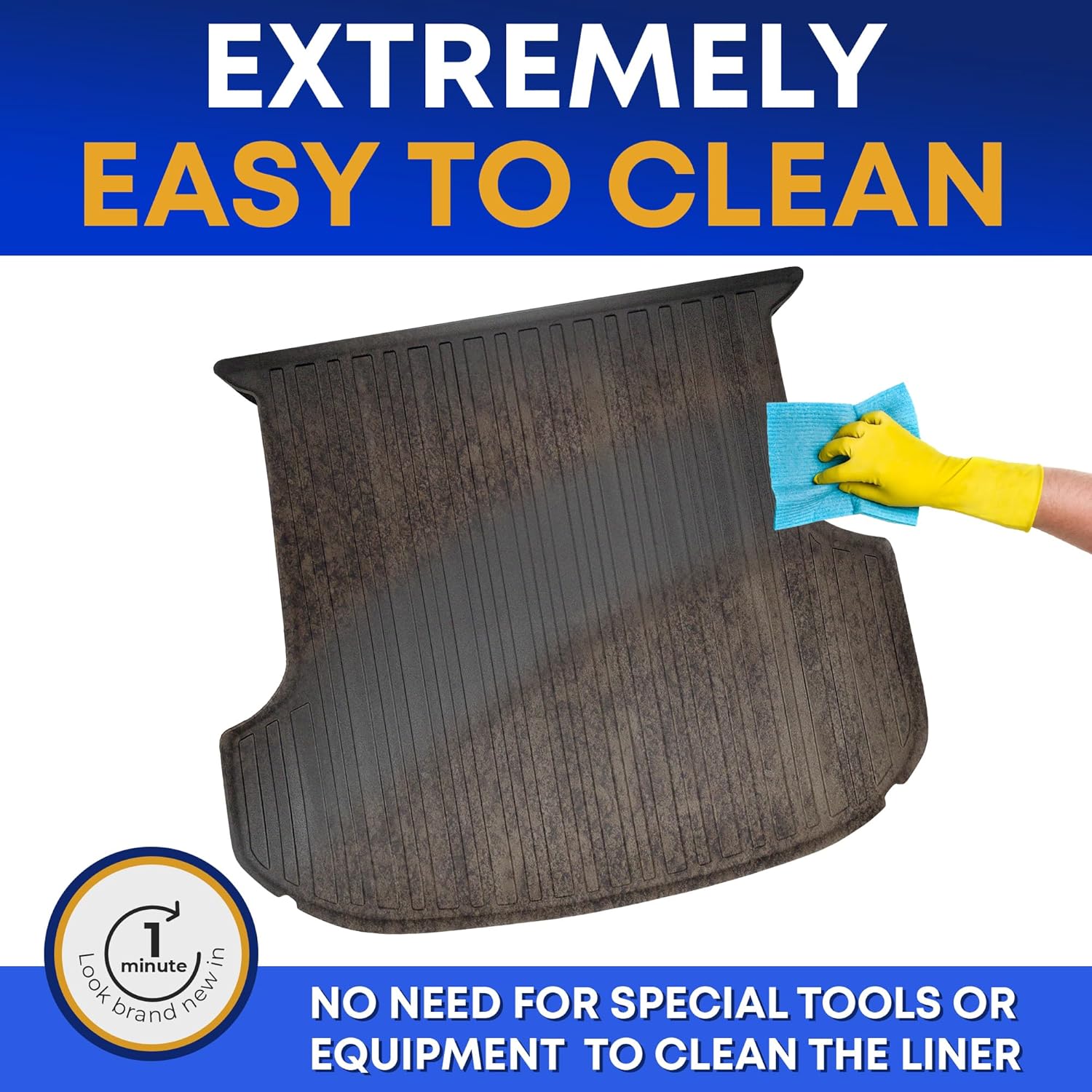 - Easy-To-Wash & Stain Resistant - The cargo mat liner for SUV is a perfect option if you are tired of the mess in your trunk after every trip. Forget the spending hours cleaning the trunk, our mat is easily washable, just rinse it with running water. The surface is stain-resistant, which makes it looks new even after years of use!