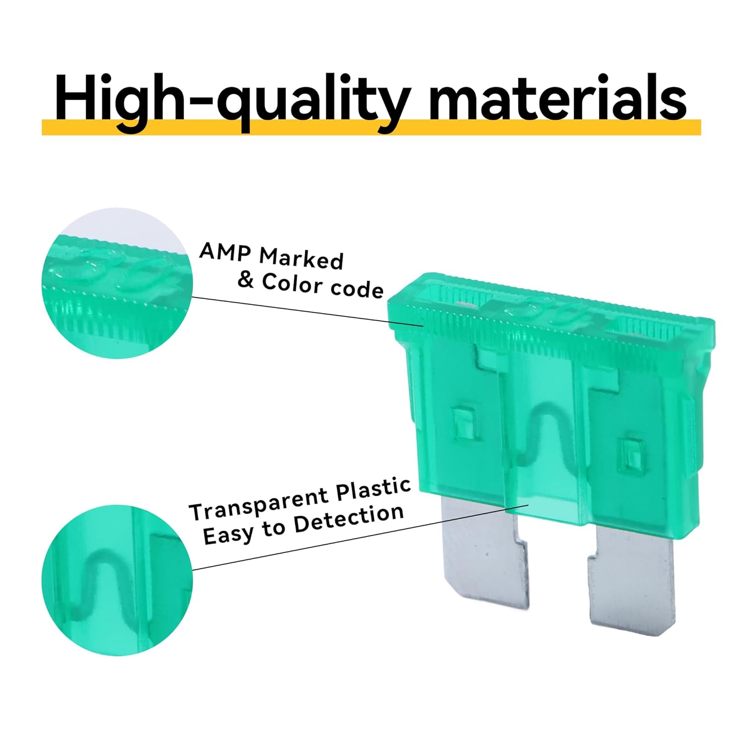 - CONVENIENT DETECTION - The plug-in blade fuses are made from transparent PES with zinc alloy inserts and transparent housings for viewing the fuse link status and quick detection of a blown fuse.