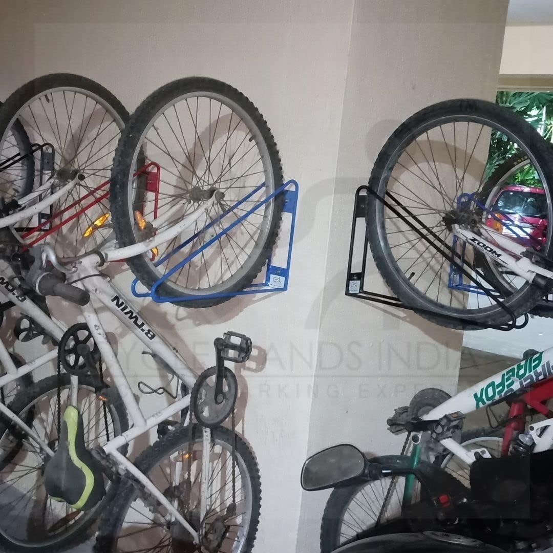 - SECURE BIKE STORAGE: Cycle Stands India ensures the security and proper care of all kinds of bikes especially for the bicycles with a tyre width upto 2.5 Inches. During storage, bikes fit snugly in the wall bike rack resting on the front tyre, avoiding the possibility of damaging the frame or rims. It can also secure bicycle against theft.