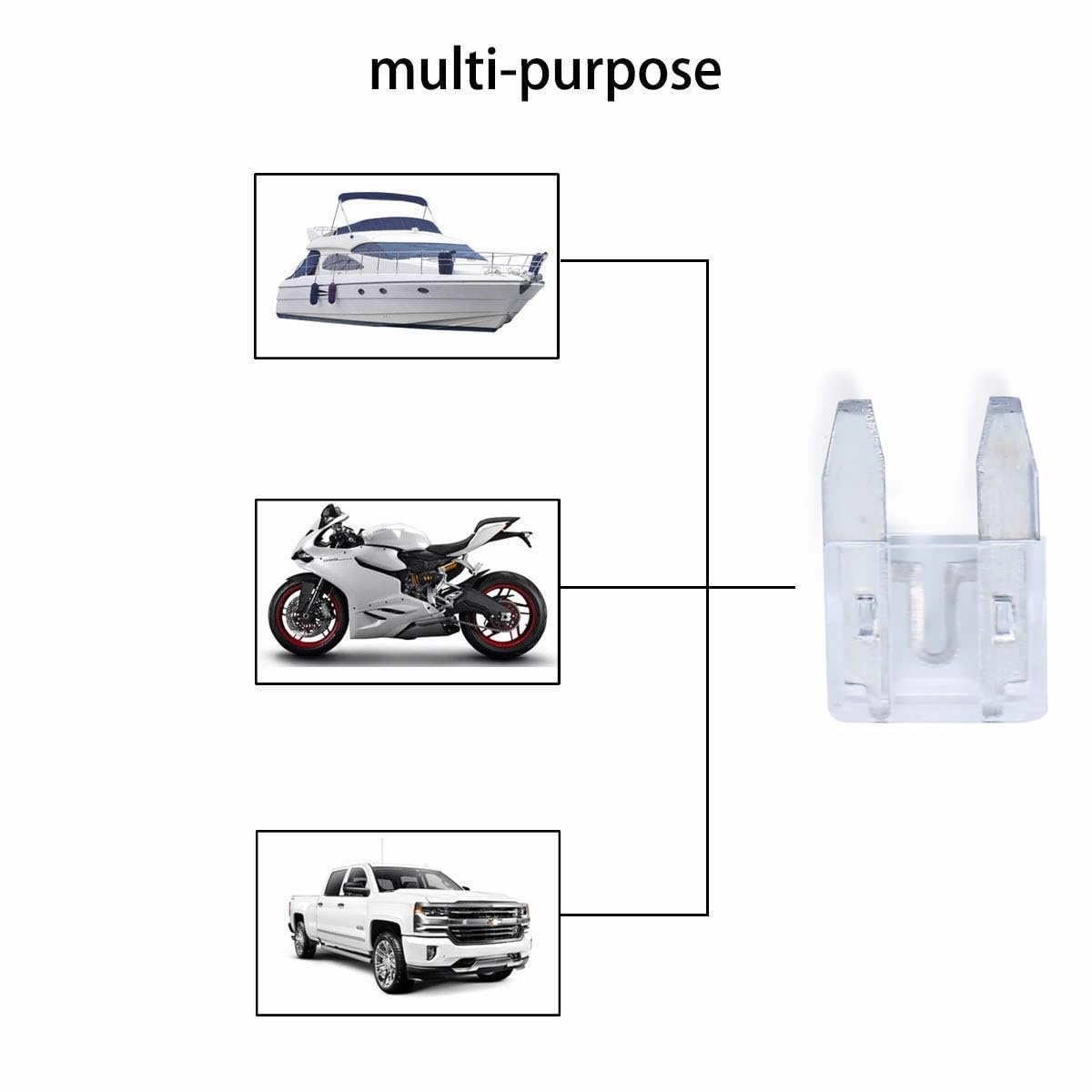 - WIDELY USE - These assorted fuses are specifically designed for Cars, Trucks, SUVs, ATVs, UTVs, Camper RV, Motorcycles, Fleet, Golf Car, Boat, snowmobiles, and most general DC applications etc., covering such components as radio, light, turn signals, etc.