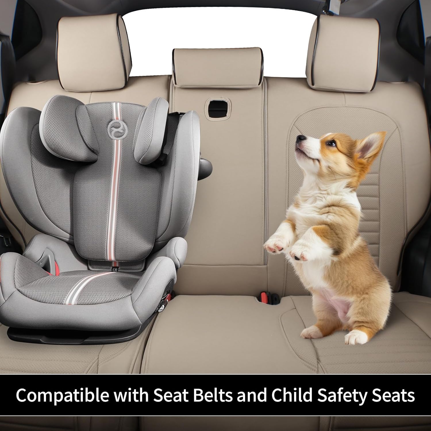 - (Premium Safe Material & Durable Protection) The car seat covers full set is made from solvent-free leather that complies with California Proposition 65, ensuring safety for you, your baby and pets. These automotive seat covers protect against spills, stains, and daily wear while being waterproof, breathable, fade-resistant, and gentle to touch - keeping your seats looking new for years.