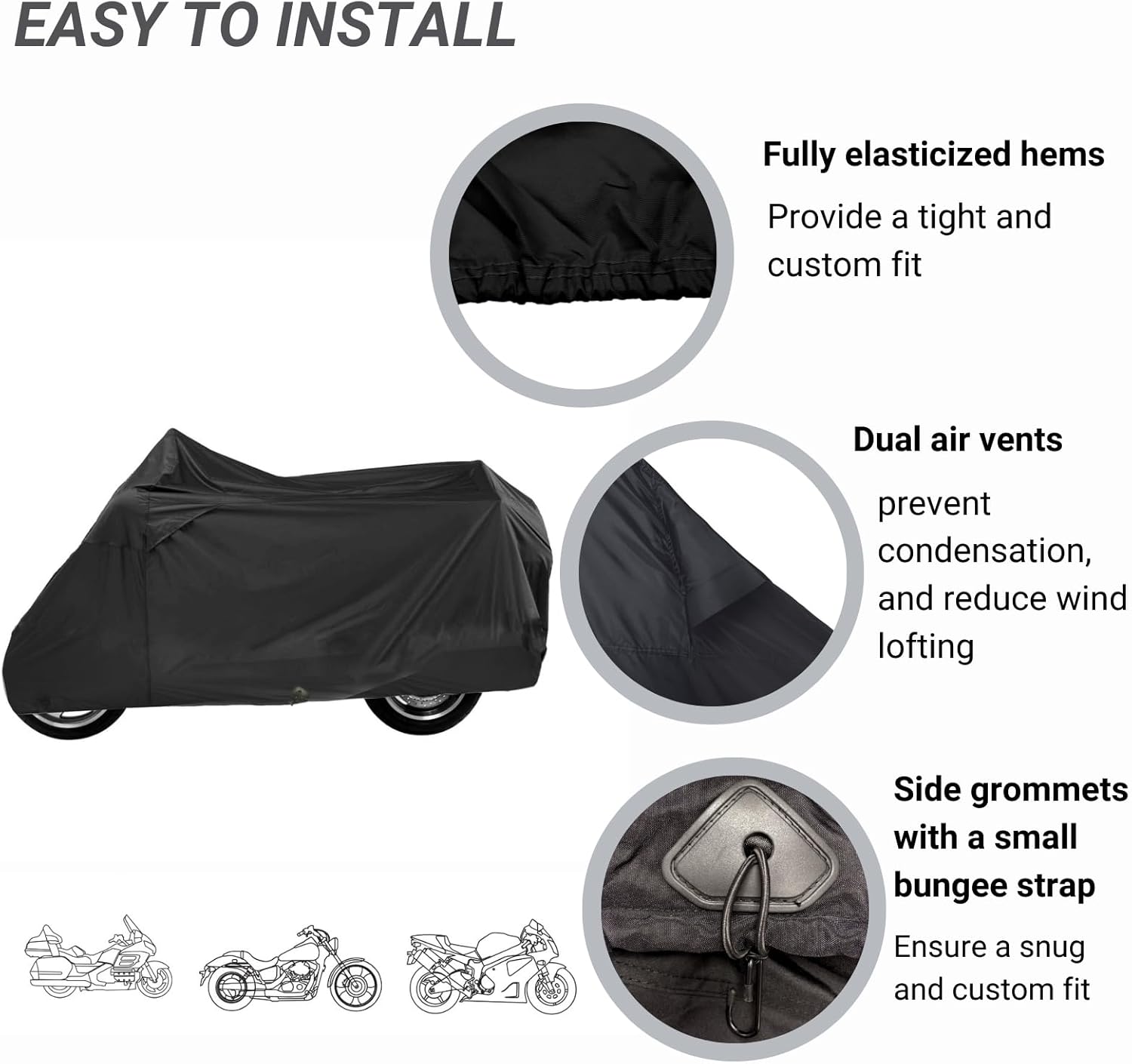 Deluxe Motorcycle Cover, Waterproof All Weather Outdoor Protection Universal Motorcycle Cover, Fade & Tear Proof Polyester fits Motorbike up to 90" L