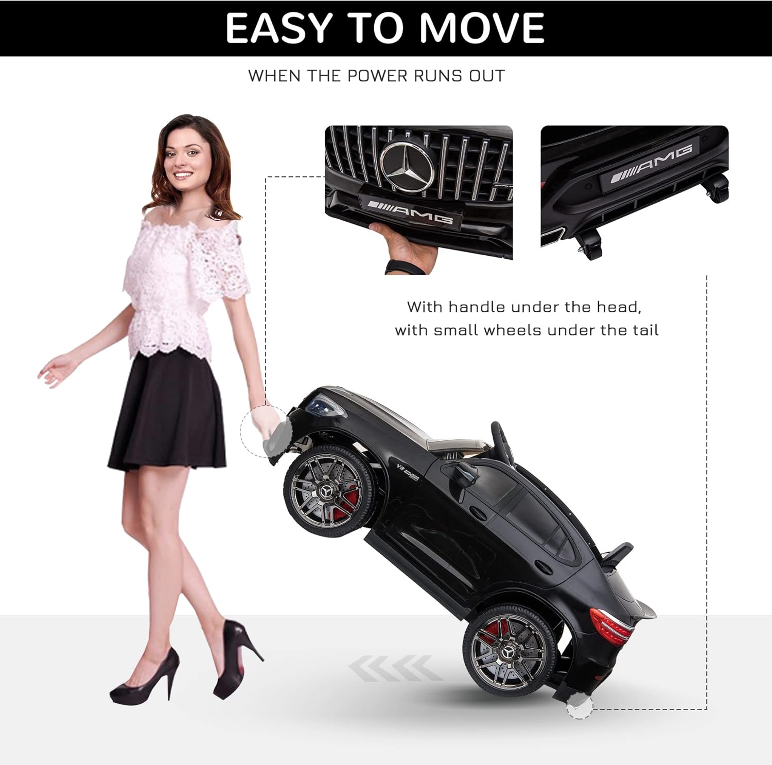 - Parents or Kids Control It: Aosom's mercedes benz kids car is controlled by kids with steering and foot pedal, and features a working safety belt to ensure that kids remain seated in place while driving, but is can also be controlled by a parent via the remote control.