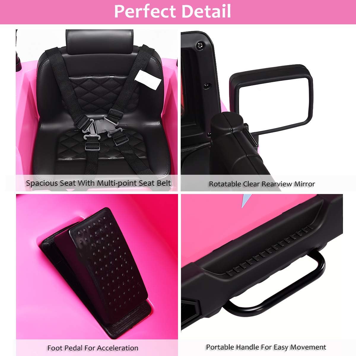 - Cool and Realistic Appearance: Featuring bright front & rear lights and double doors with magnetic lock, this ride on truck is committed to providing your children with the most authentic driving experience. The cool truck shape will undoubtedly make it a king-like existence in the buggy toy. Spring suspension system ensures a super smooth ride.