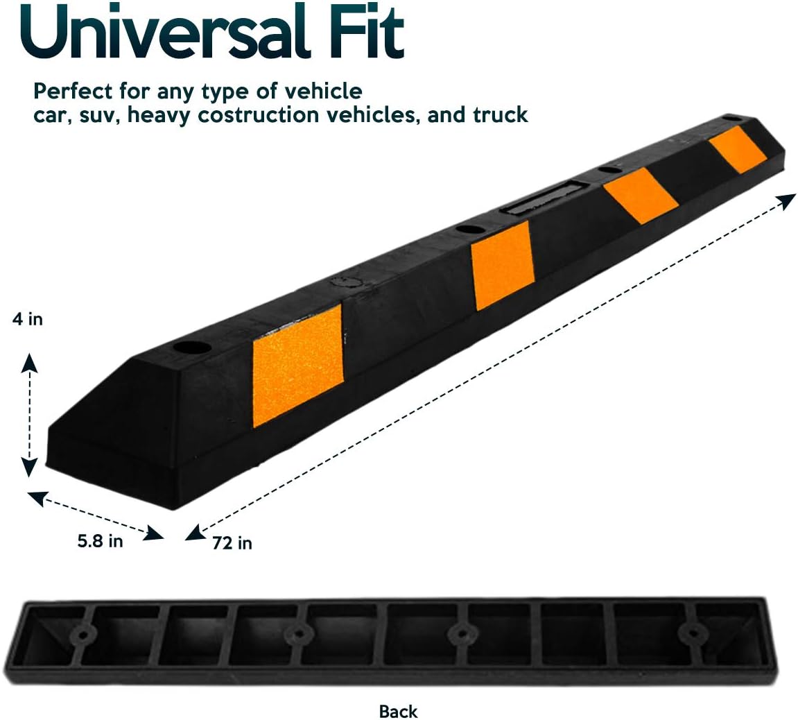 ZONETECH Large Heavy Duty Rubber Parking Curb – 72” Premium Quality Auto Garage Wheel Stopper Professional Grade w/Yellow Reflective Tape for Car, Truck, Trailer and RV (1-Pack)