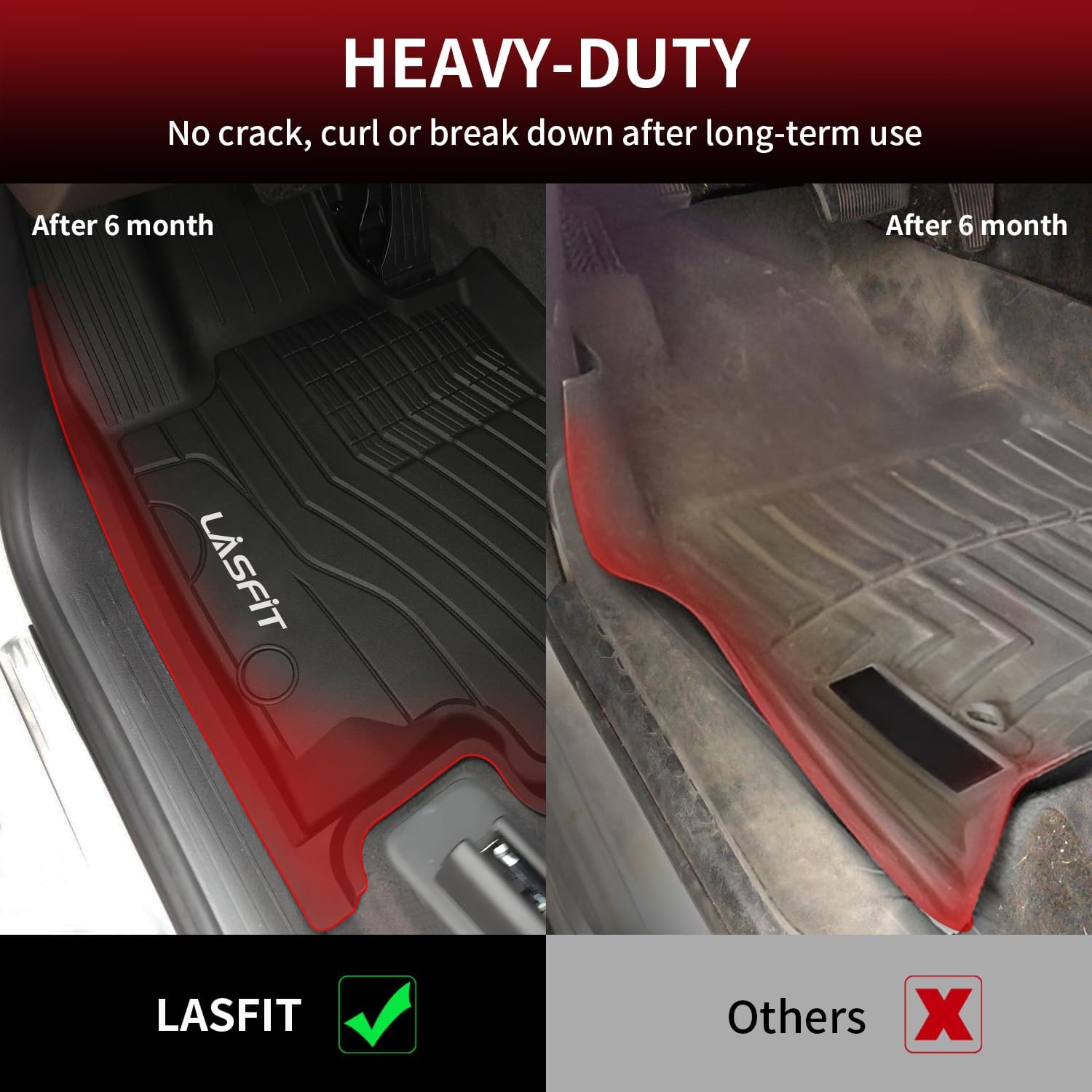 - Why Choose LASFIT : LASFIT has been established for about 10 years. We use high quality raw materials, the floor mat are thicker, heavier, cover a larger area and are not easy to deform. We accept returns for any reasons in 30 days and provide local store support. You can consult customer service before purchasing.