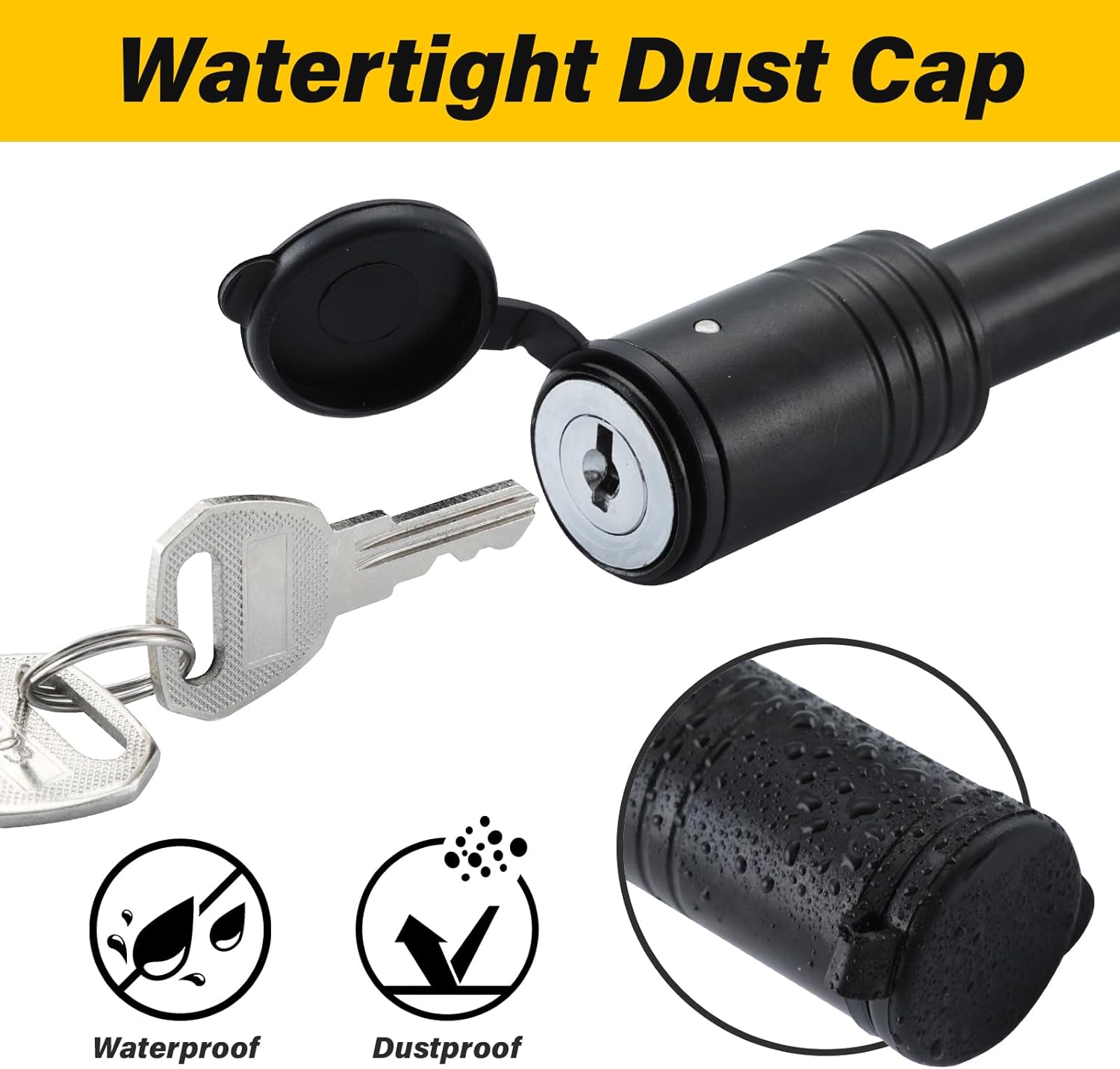 - Black coated finish, resists rust and corrosion no matter what the weather is, so you can always tow safe. With all-weather rubber key slot cap, keeps the internal keyhole away from moisture, dust and rust