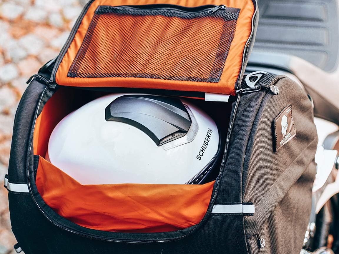 - [Main chamber] Suprisingly large main chamber in our motorcycle travel luggage. It easily fits a full faced motorcycle helmet inside.