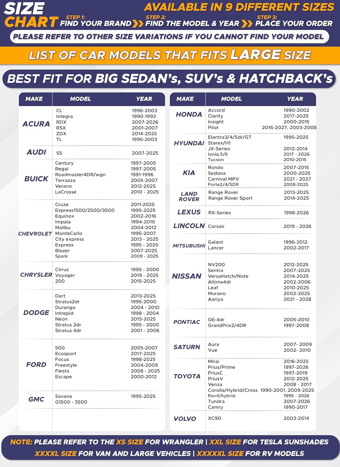 - Vehicle Service Type Mid SUV, Sedan, Truck : Material 240T Polyester with silver coating