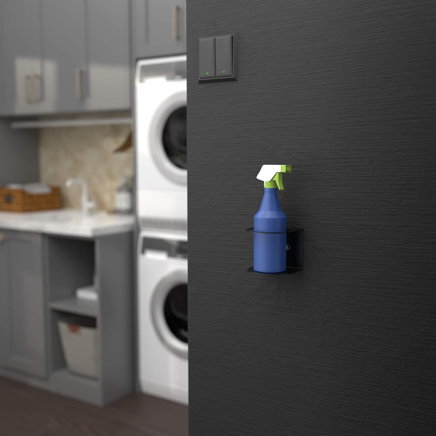 - Easy Access: Koova Spray Bottle Holder is a sturdy, easy space-saving storage system for your most used cleaners, garden products or cooking oils. Constructed to last a lifetime, mount on any wall in your home to keep everything in place and within reach!