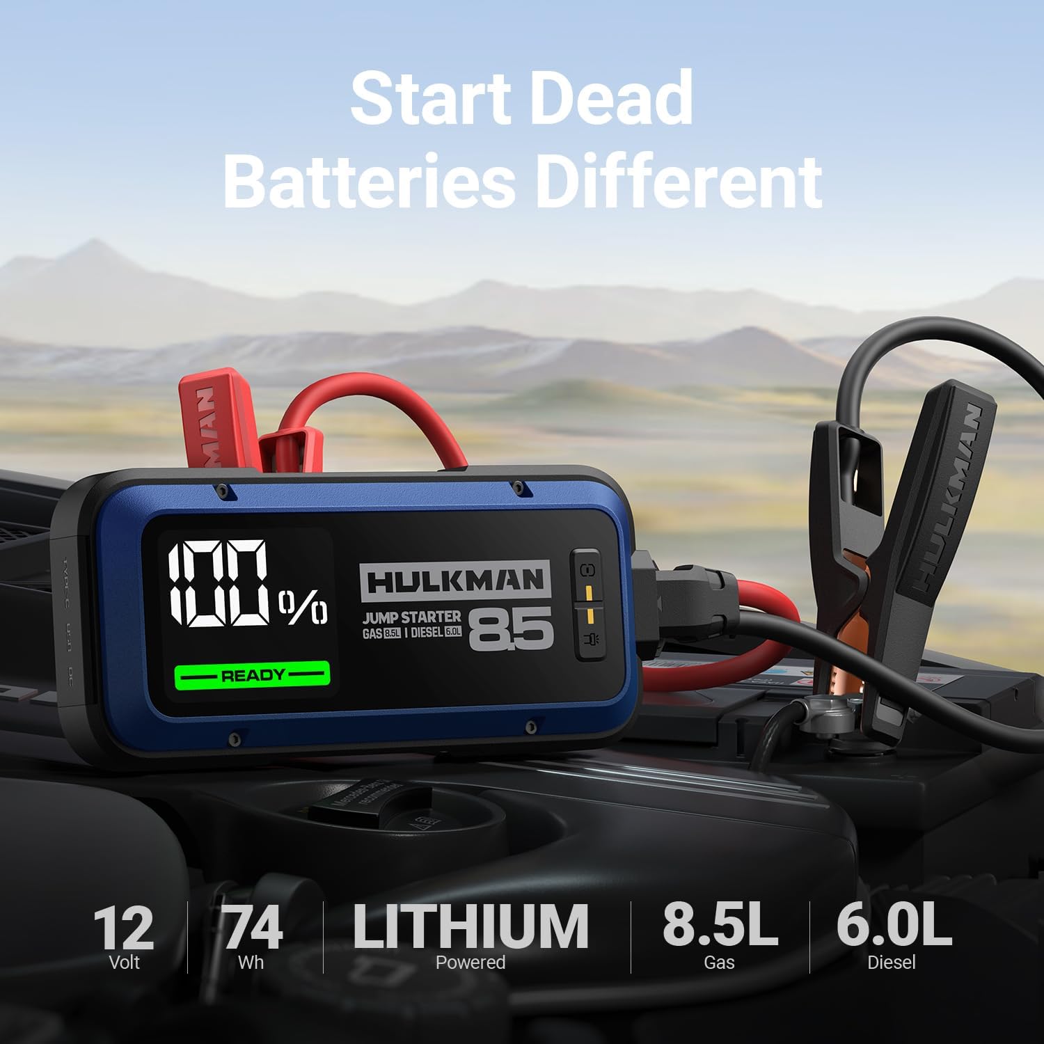 Hulkman Alpha85,Cobalt Blue, 2000A 74Wh Smart Jump Starter, 12V Portable Car Battery Booster with 3.3" Display, USB-C Power Pack,Includes 65W Wall Charger,Jumper Cables for up to 8.5L Gas/6.0L Diesel