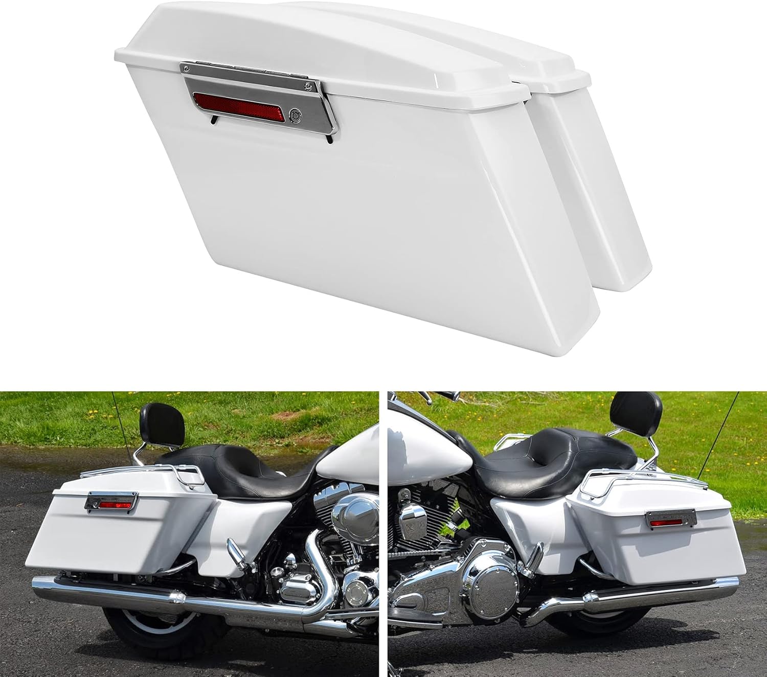 - Material: Made of durable ABS plastic, Vivid Black finish, strong and practical; Left & right stock style lids, fit the saddlebags perfectly and waterproof