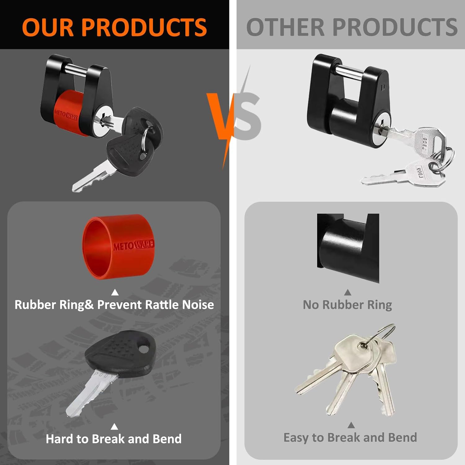 - 【PREMIUM MATERIAL】- Made of premium strength steel and coated with electrophoretic paint, the trailer lock is durable and rust-proof. It is reliable for long-term hauling and secure for full protection, safely protecting your trailer, boat, camper and so on from theft.