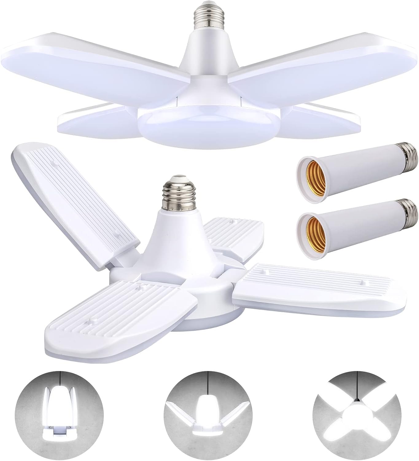 - Easy To Install:The led lights for garage ceiling with E26/E27 standard base. You can install the deformable garage led light easily just like screwing a traditional light bulb, no need for extra tools, no more wiring, and professional electricians. Note: Please turn off the power before installation