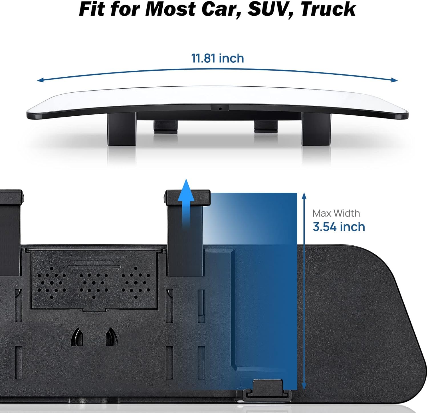 - 【UNIVERSAL】: The car clip-on design fits universal vehicles, like a car, SUVs, CRVs, Vans, and trucks. Note: To confirm that this rearview mirror fits your car, please confirm the size before purchasing: the rearview mirror measures 11.8 inches x 2.9 inches (can be extended up to 3.5 inches)