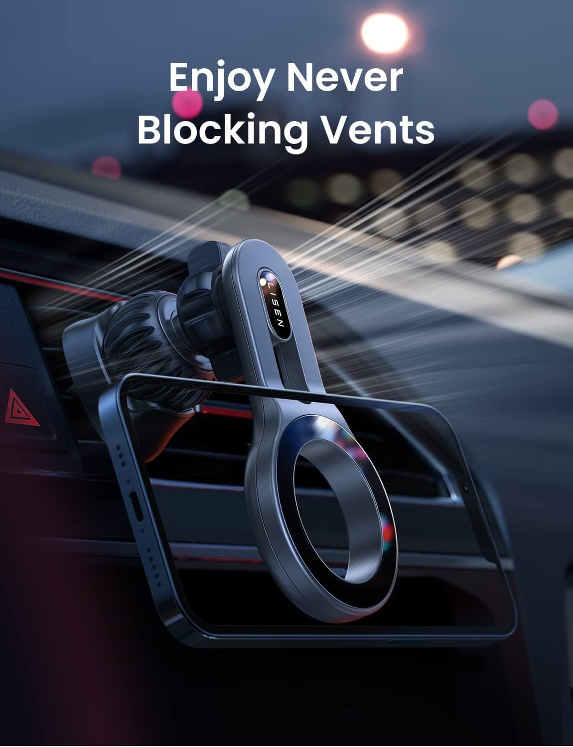 - 👍More Stable, Less Blocking: LISEN has upgraded this magsafe car vent mount from 3 directions.①Upgrade extension arm to protect your phone overheating crash; ②Cell phone holder for car mount with most stable "Steel Hook";③Magnetic phone car mount that has the strongest magnet force, which can hold up to 10 iPhone 14 Pro Max. LISEN provides at least 1 years of user service.
