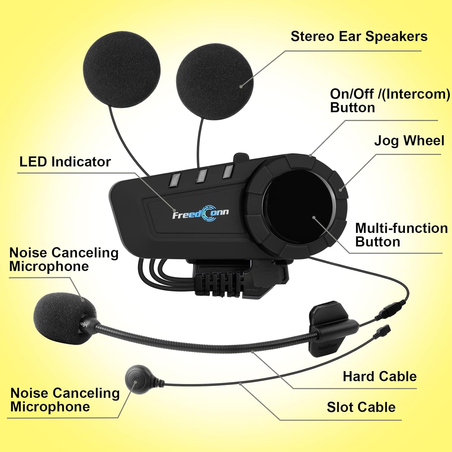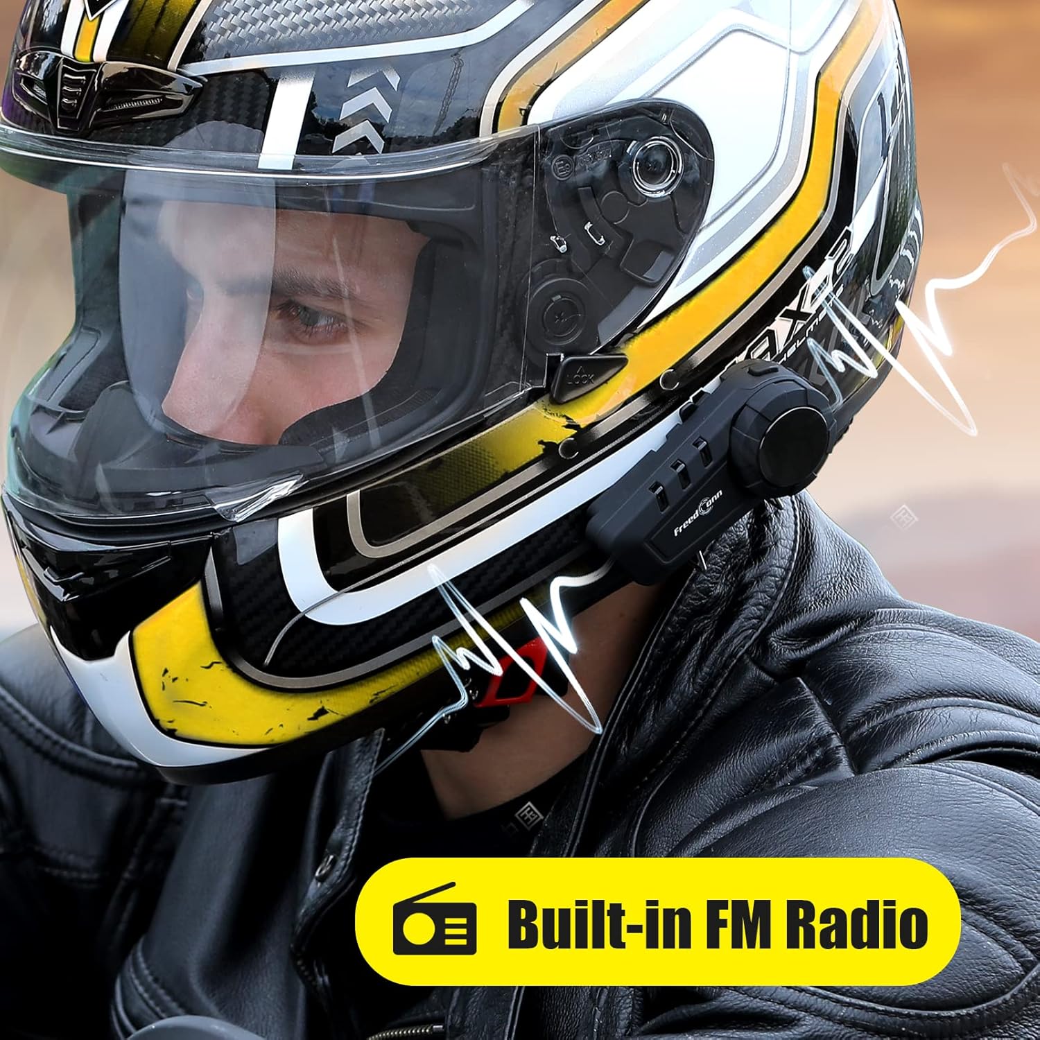 FreedConn KY PRO Motorcycle Helmet Bluetooth Headset, Motorcycle Communication Systems with CVC Noise Cancellation, Stereo Music, 6 Riders 0.75mi/1200m intercom, Dual Device Connection, IP65, 1 Pack