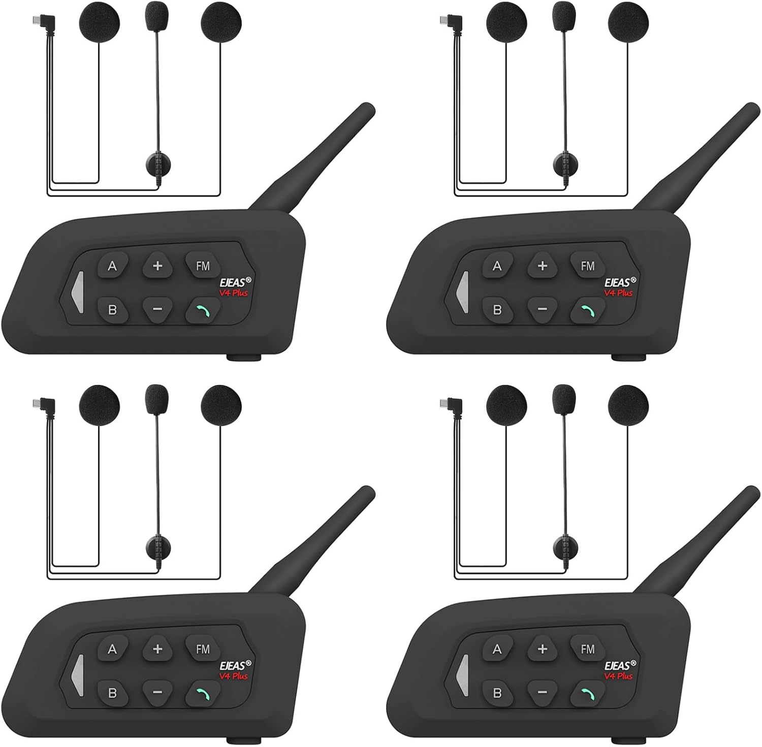 V4 Plus Motorcycle Bluetooth Helmet Intercom Headset, 4 Rides Group Communication System for Motorcycling Soccer Referees Skiing ATV/Off Road (4 Pack)