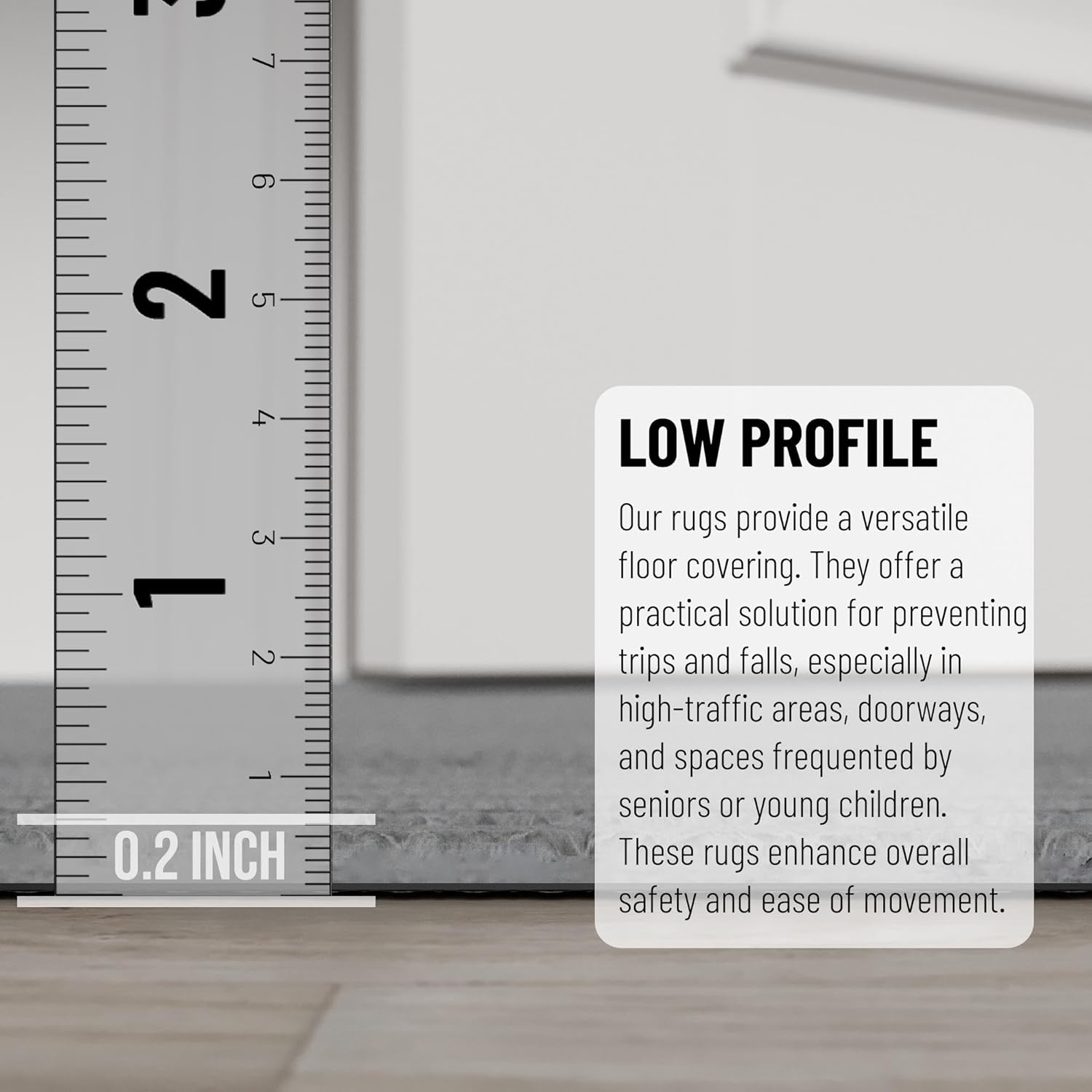 - [ULTRA THIN PILE]: An ultra thin pile thickness of 0.2 inches offers ideal functionality that is perfect for busy areas, underneath furniture, and in entryways as it will not obstruct doorways.