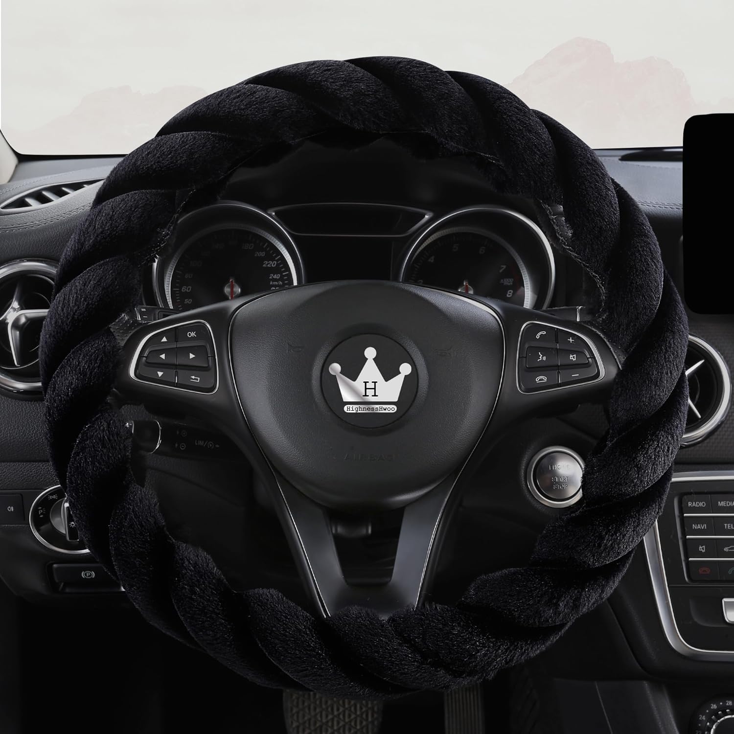 - ♛【Classic Twisted Fur Design】- Designed with soft polyester fluff, thick sponge and white rubber inner ring, no more cold feeling, keeps your hands warm while driving, bring you a new driving experience.