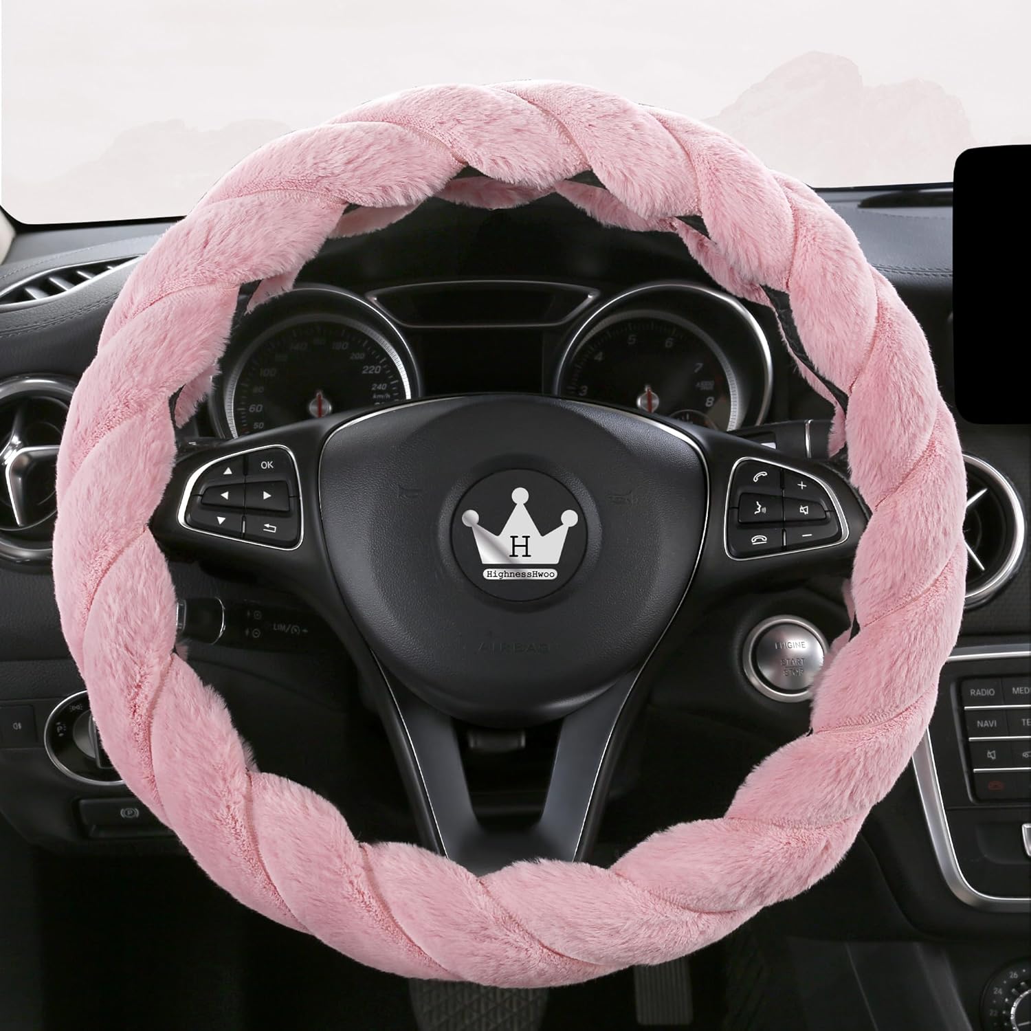 - ♛【Classic Twisted Fur Design】- Designed with soft polyester fluff, thick sponge and white rubber inner ring, no more cold feeling, keeps your hands warm while driving, bring you a new driving experience.