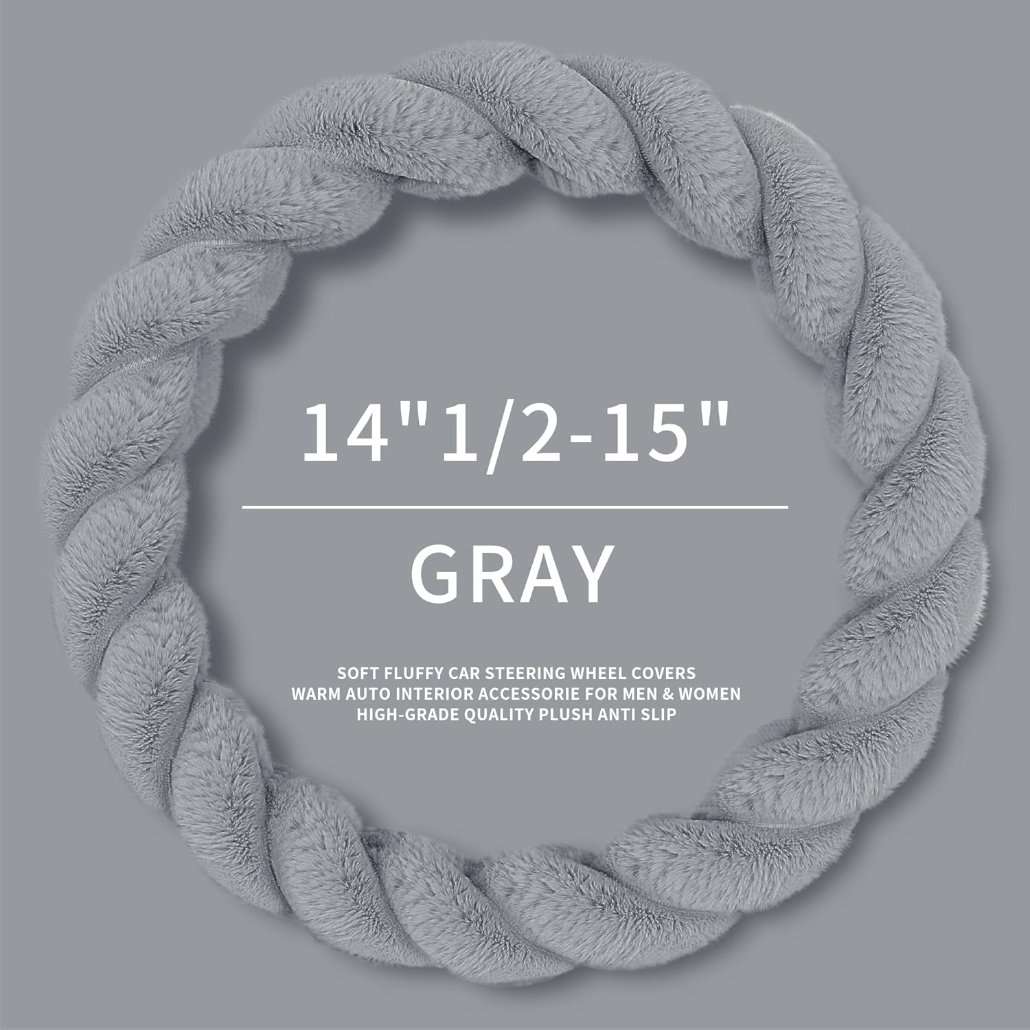 Luxury Fluffy Winter Car Steering Wheel Cover for Women Soft Warm Plush Cute Auto Accessories for Vehicle, Sedan, Universal, Fuzzy, Anti Slip, Gray, Standard Size, 14.75-15.15"