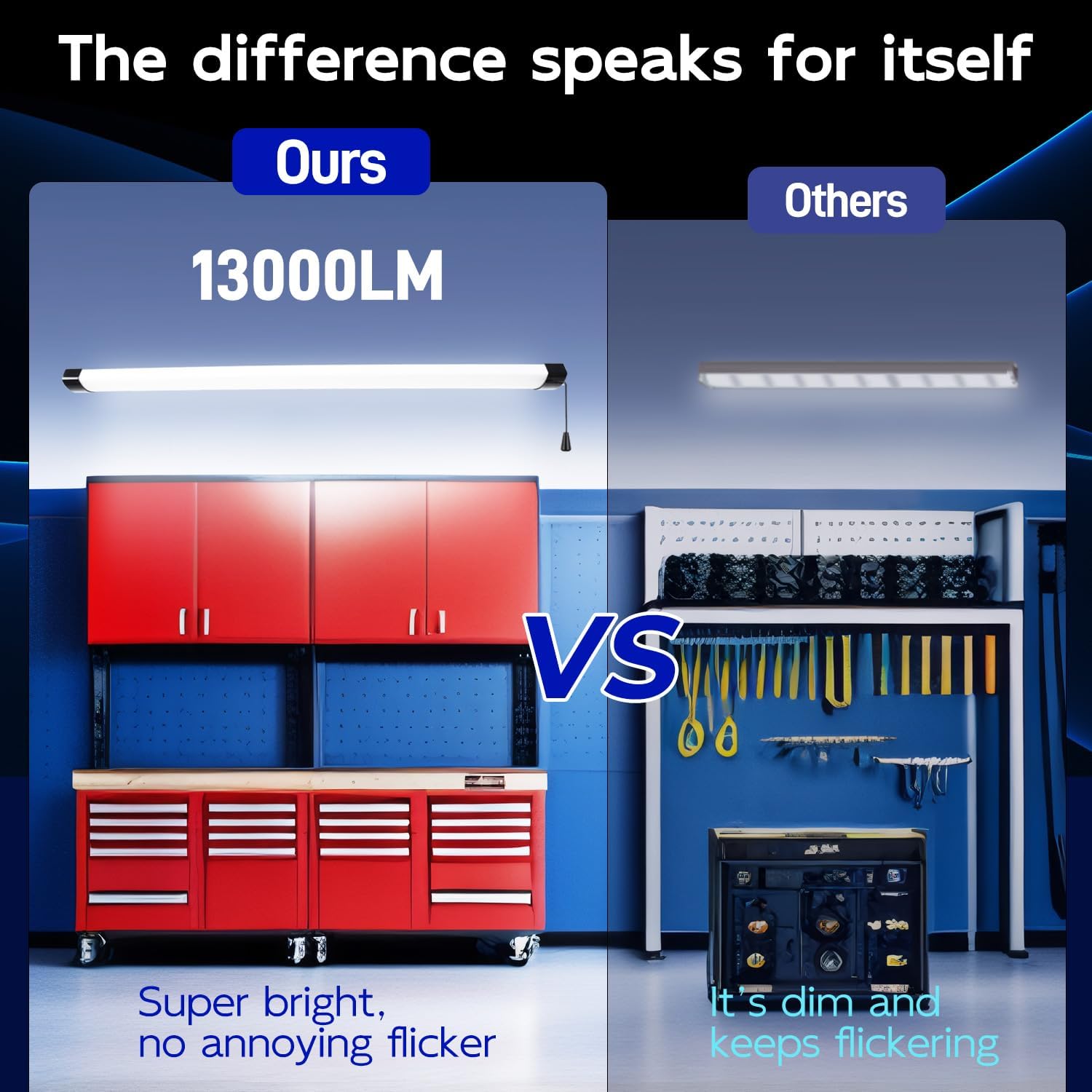 - ā Linkable - 4ft linkable shop light use plug connection to connect up to 3 pcs together in your garages, workshops, workbench areas, storage areas, warehouses, basements, equipment rooms, etc.