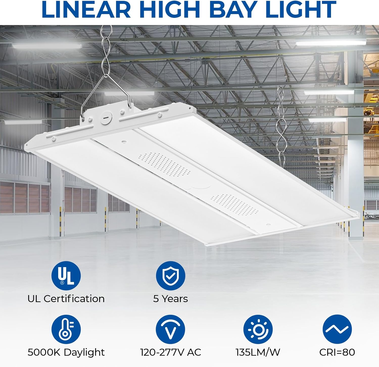 - 【Super Bright & Energy Saving:】150W led linear high bay light adopts SMD 2835 lamp bead, providing 20250LM super bright cold white light, illuminating the area as if it were daytime. This is an amazing 135LM/W!Save more than 80% of the electricity bill.