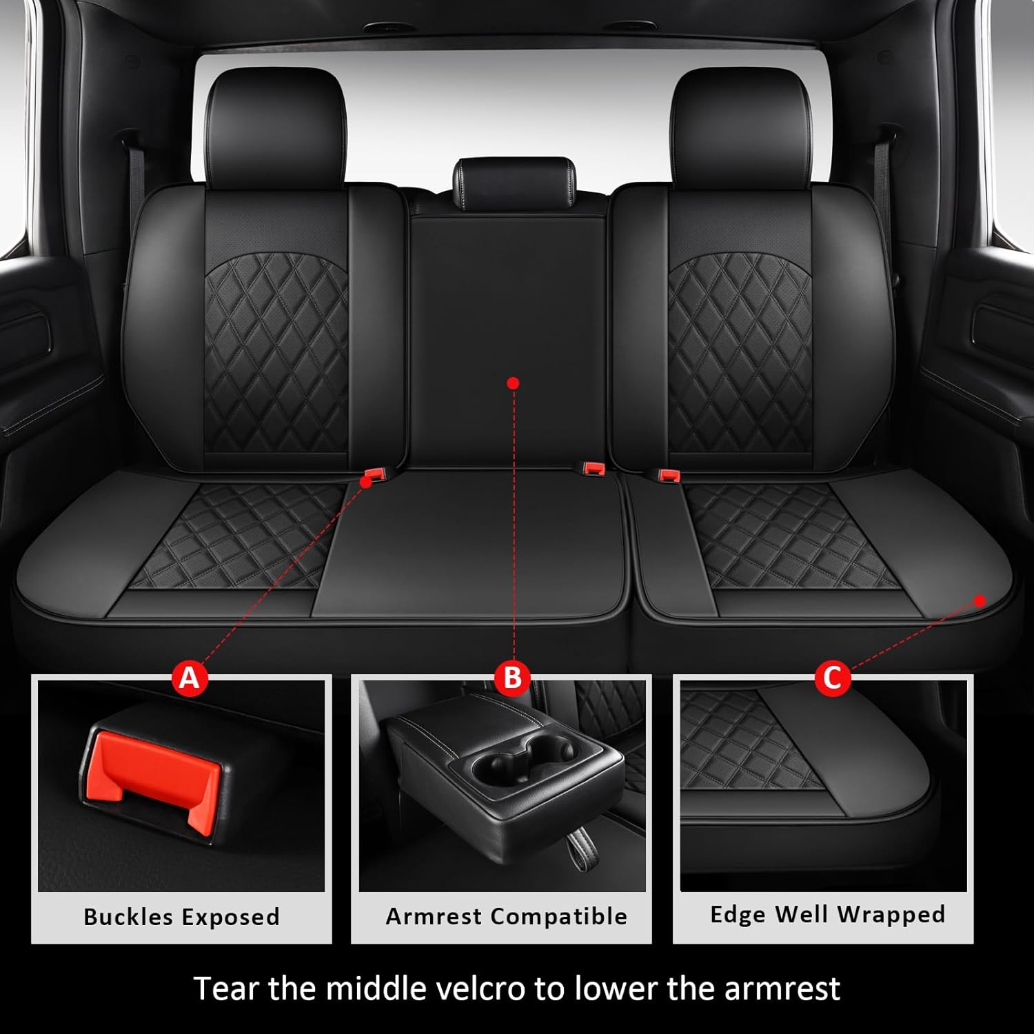 - Perfect Fit: Truck seat covers for ram Waterproof Leather Custom Fit 2019-2025 Ram 1500 2500 3500 Crew Quad Regular Cab Pickup Cushions Compatible with Split Flat Bench 40/60.Note,it's not fits a Curved bench seat.