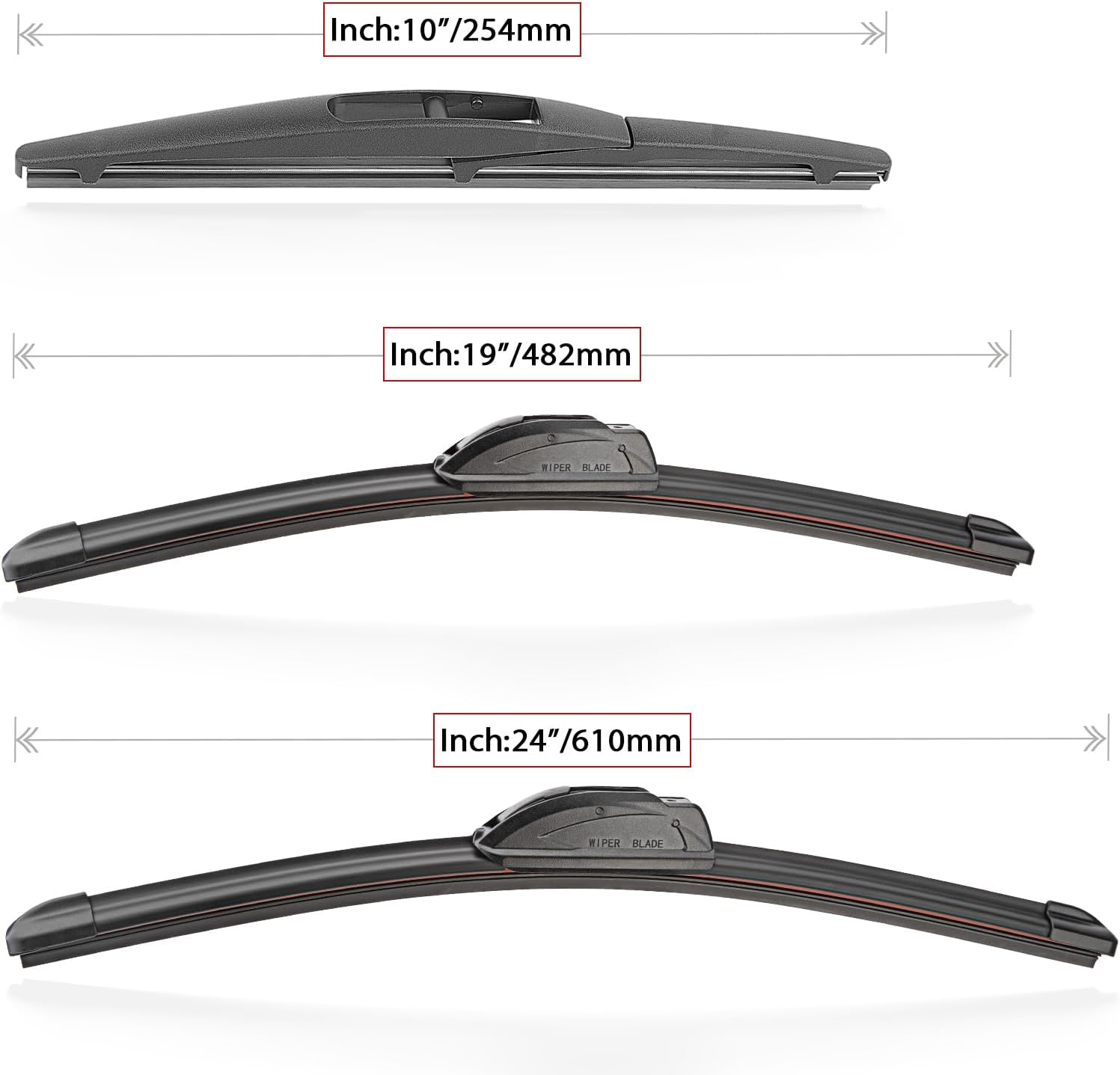 Windshield Wiper Blade Set Replacement for 2011-2013 Infiniti QX56/2014-2018 Infiniti QX80 and Rear Windshield Wiper Blade-24"/19"/10" (Set of 3) U/J HOOK