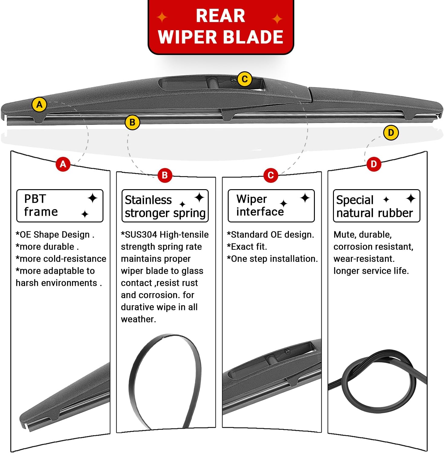 - {WIPER PERFORMANCE} Natural rubber material making sure the wiping is the best,quiet wiping without judder or squeaking, resistant and a long service life