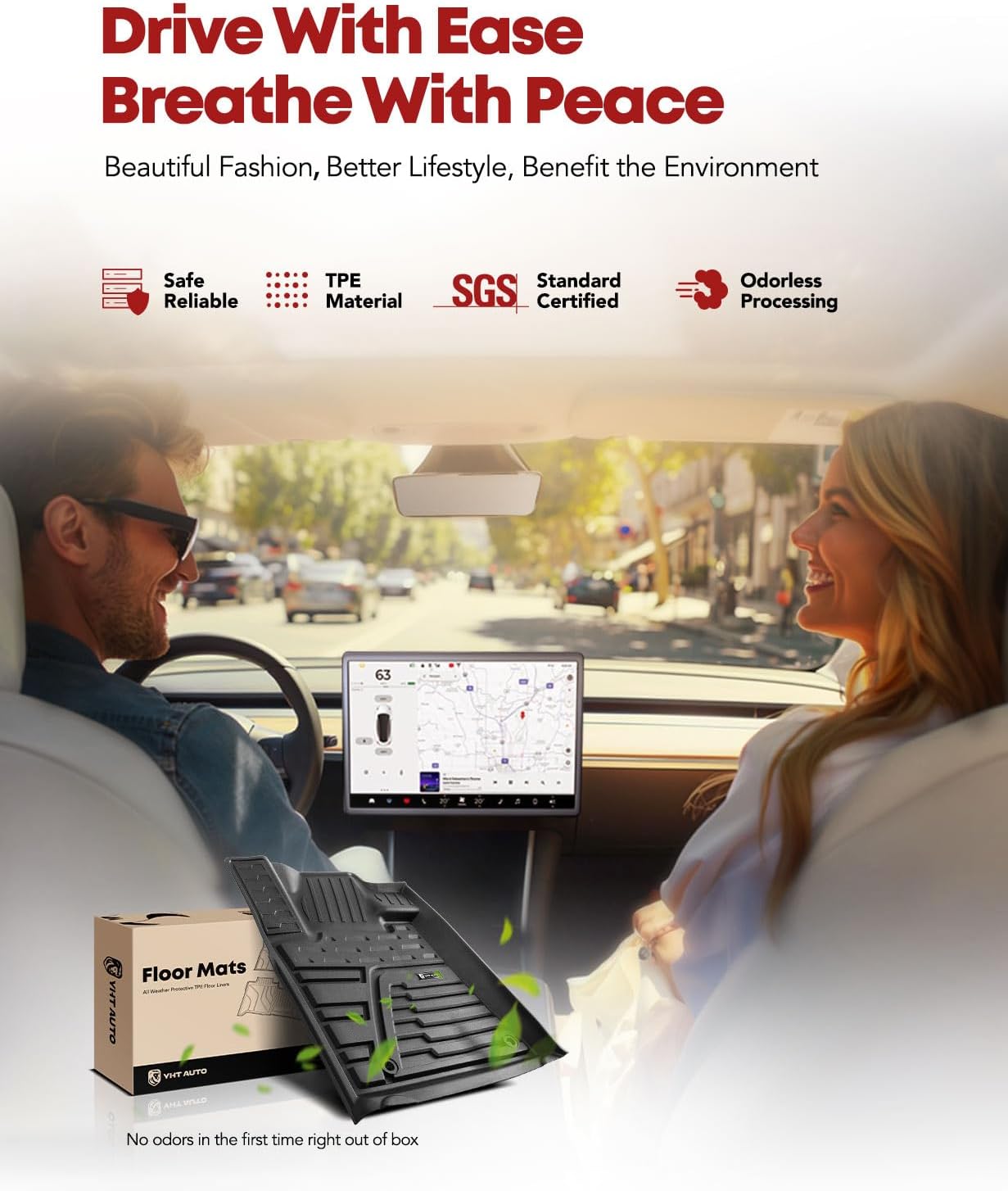 - Odorless floor liners: The floor mat is made of TPE material, which smells odorless and soft touch. Injection molding ensures precision, the anti-skid design on the back can prevent unwanted movement during driving