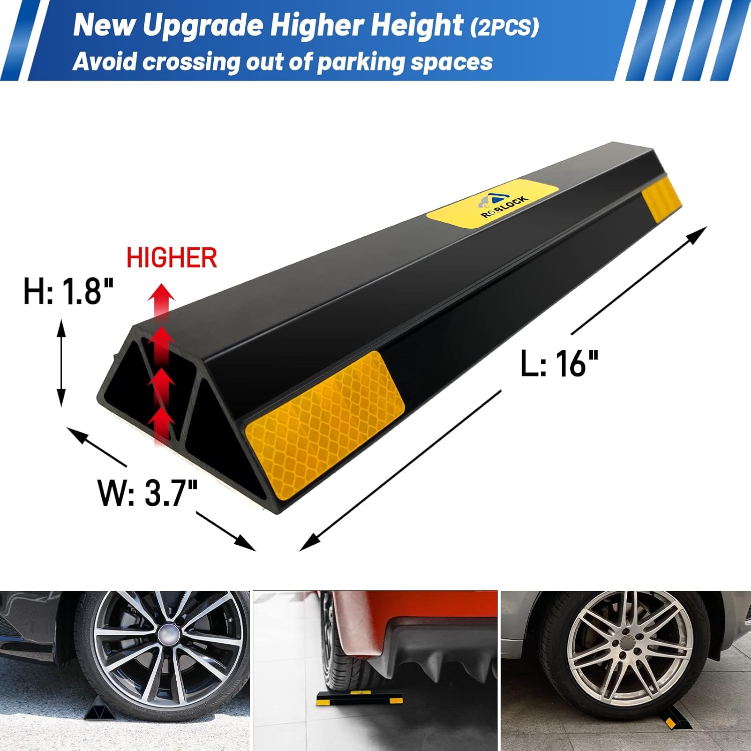 ROBLOCK 16" Heavy Duty Parking Aid with 1.8 Inch Higher Design, Car Parking Stopper for Garage 2 PCS, Parking Aids Protects Car, Parking Gadgets Easy to Install 2 Packs, 16" L x 3.7" W x 1.8" H