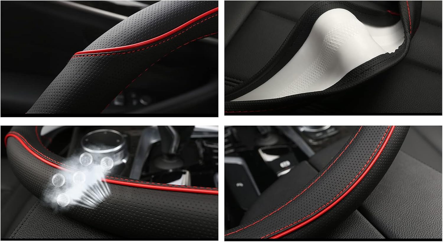 D Shape Car Steering Wheel Cover, Universal 15 inch Stitching Color Anti-Slip Steering Wheel Protector, Red and Black Style (Red and Black D Shape)
