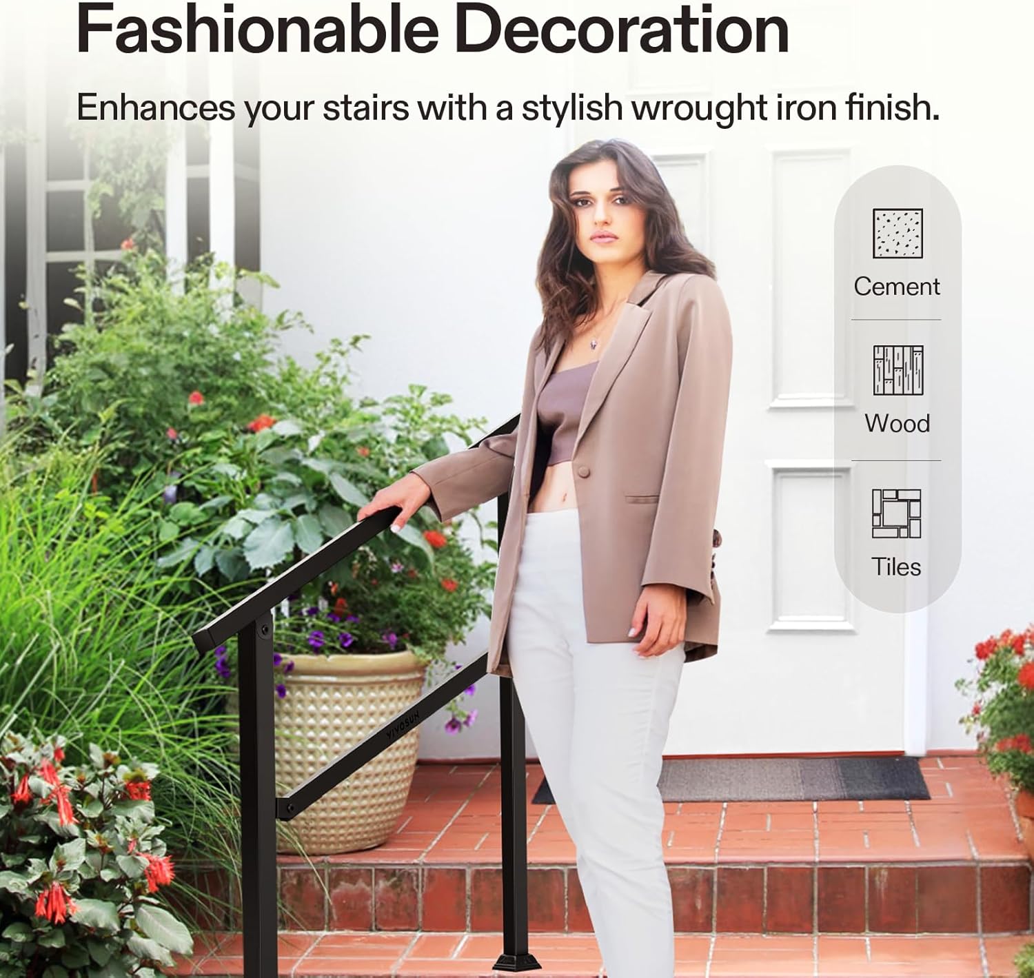 - Safe & Fashionable: This railing’s powder coated surface is easy to maintain and clean; It helps people keep balance in rainy days or in winter, and prevents slipping on wet or icy days, and also decorates your stairs with a fashionable wrought iron look