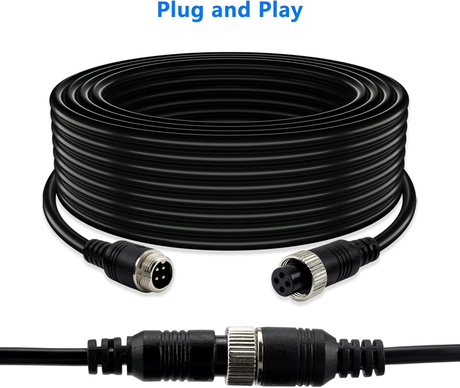 - ⚠️4 Pin 65.6 ft Car Video Extension Cable male to female,transmits video and power in one cable.Please pay attention to the pin configuration and select the correct cable.