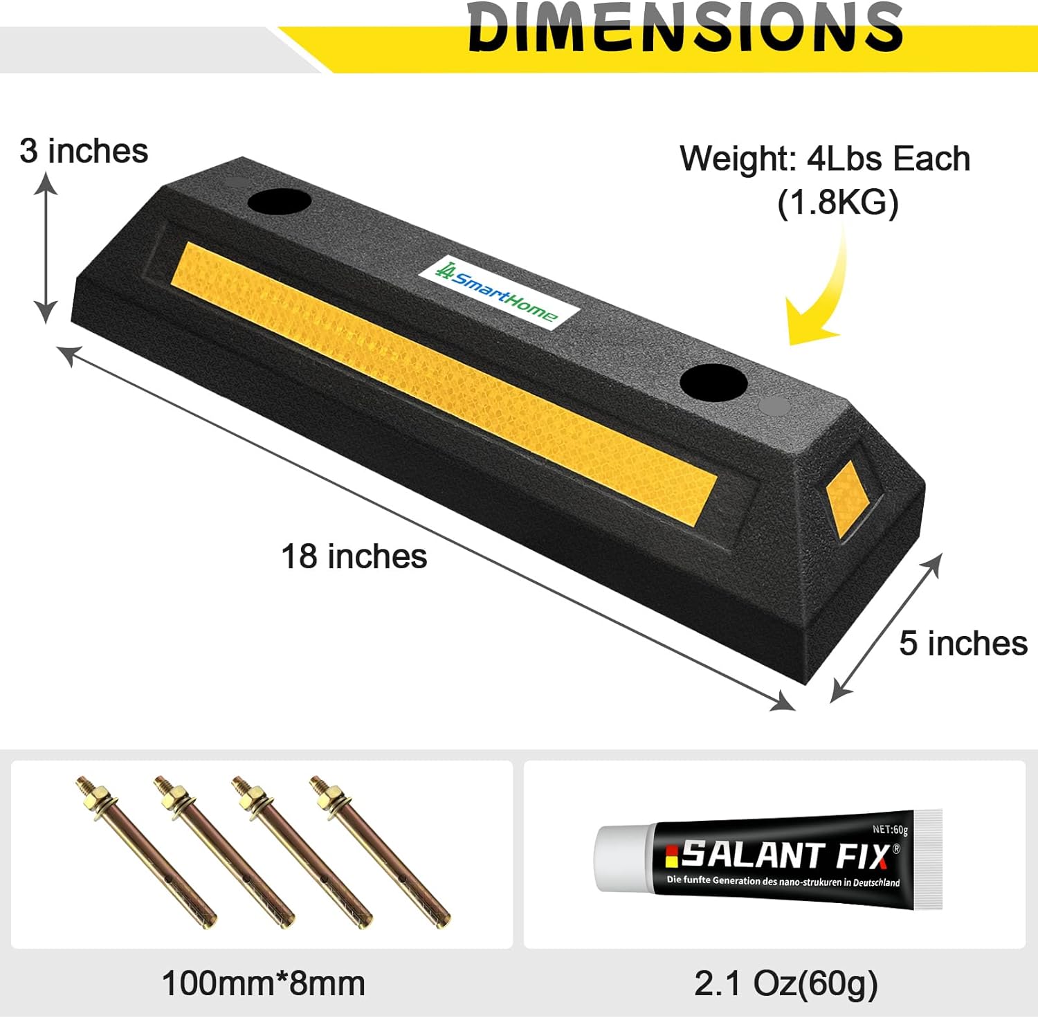 - ✯【PROFESSIONAL DESIGN】:The rubber wheel stoppers are equipped with high visibility reflective strips.The size of the parking curbs are 18x5x3 inches, which is tall enough for most size vehicles instead of rolling over it without any feeling. It will be easier and safer for you to park in the garage or parking lot with our parking aids.
