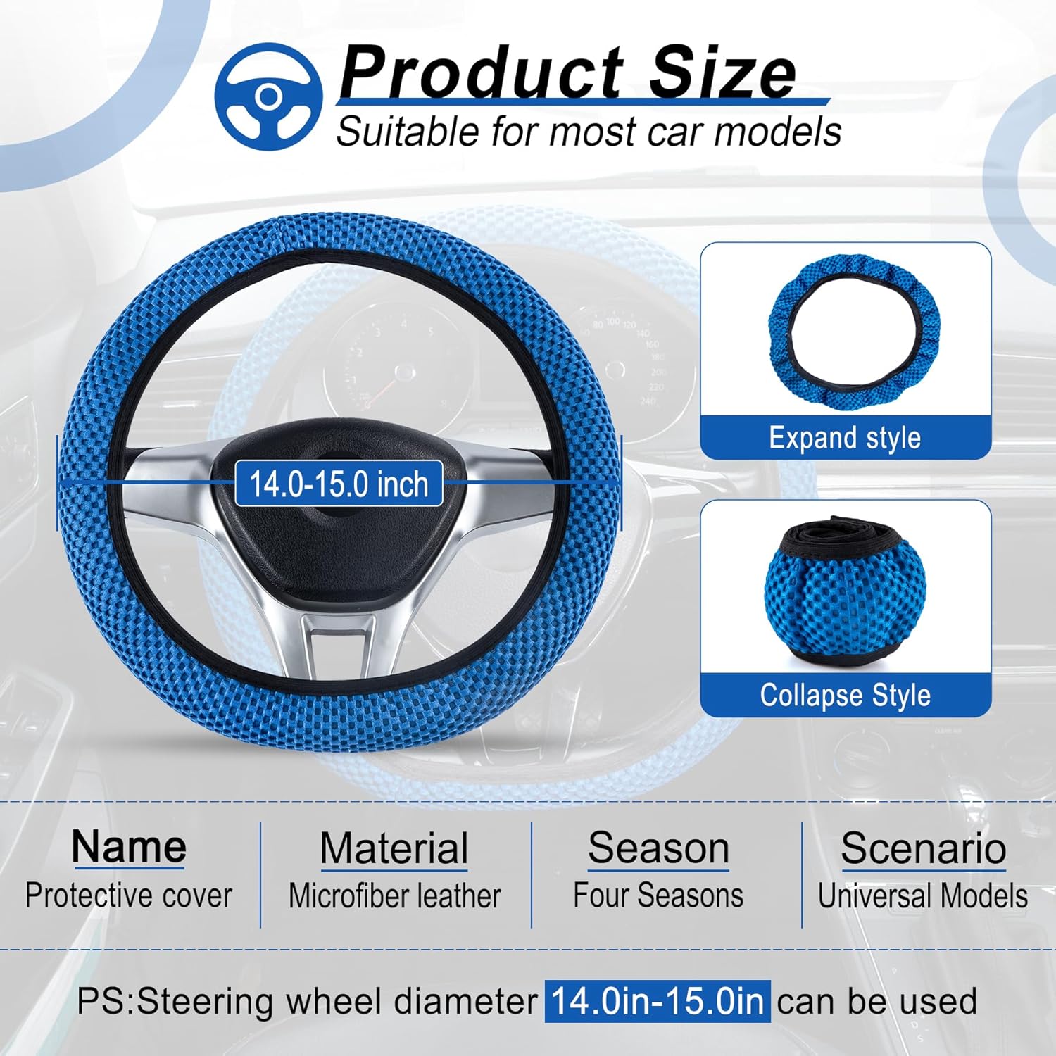 alpmosn Elastic Stretch Steering Wheel Cover, Universal Interior Accessories Steering Wheel Cover for Women & Men, Breathable Microfiber Ice Silk, Anti-Slip, Odorless, Easy Carry(Blue)