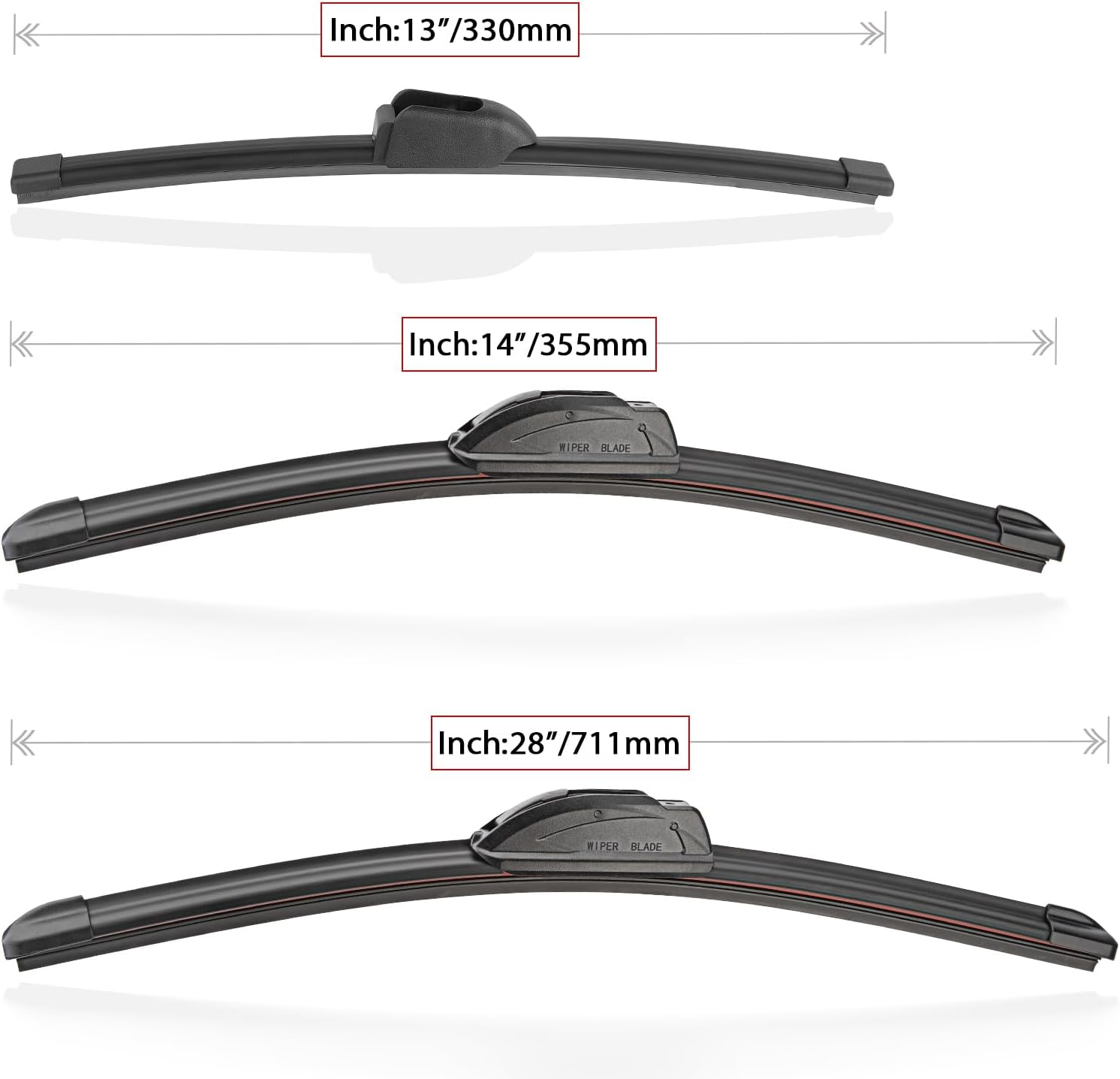 - {WIPER PERFORMANCE}: Natural rubber material making sure the wiping is the best, quiet wiping without judder or squeaking, resistant and a long service life.