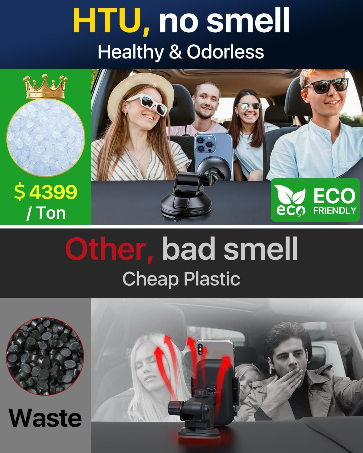 - [2025 Original Design, Magnetic Holder Expert Compatible for Magsafe] Optimizing 17 models and testing 156 kinds of material. HTU R&D team designs the [Strong Magnet, 360° Rotatable & Alloy Suction Cup ] windshield dashboard magnetic car phone mount for MagSafe. Industry-only made of Solid Aluminum Alloy & KING of Plastic is certified by CE, RoHS, CP65