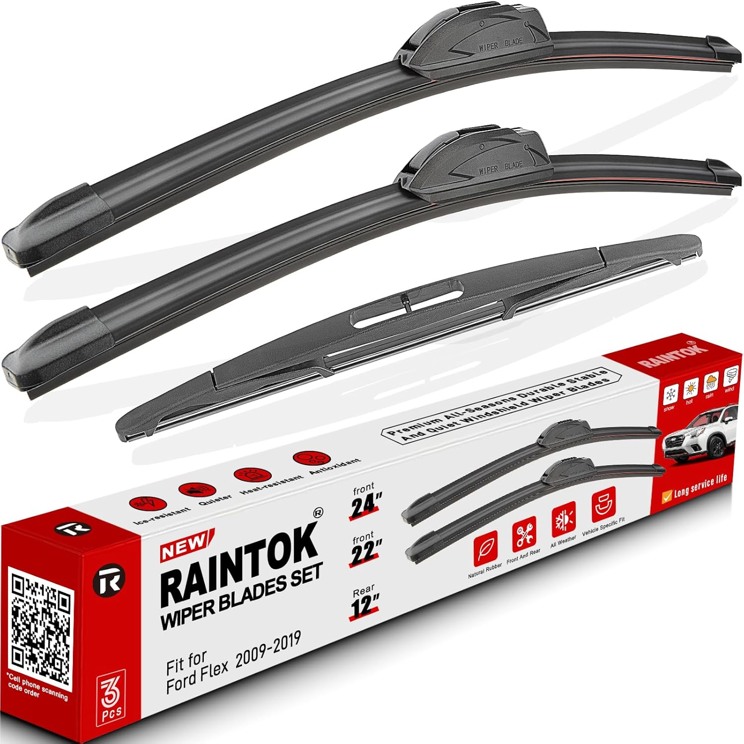 - {FITMENT}: Replacement for 2009 2010 2011 2012 2013 2014 2015 2016 2017 2018 2019 Ford Flex 24inch + 22inch front with 12inch rear windshield wiper blades.