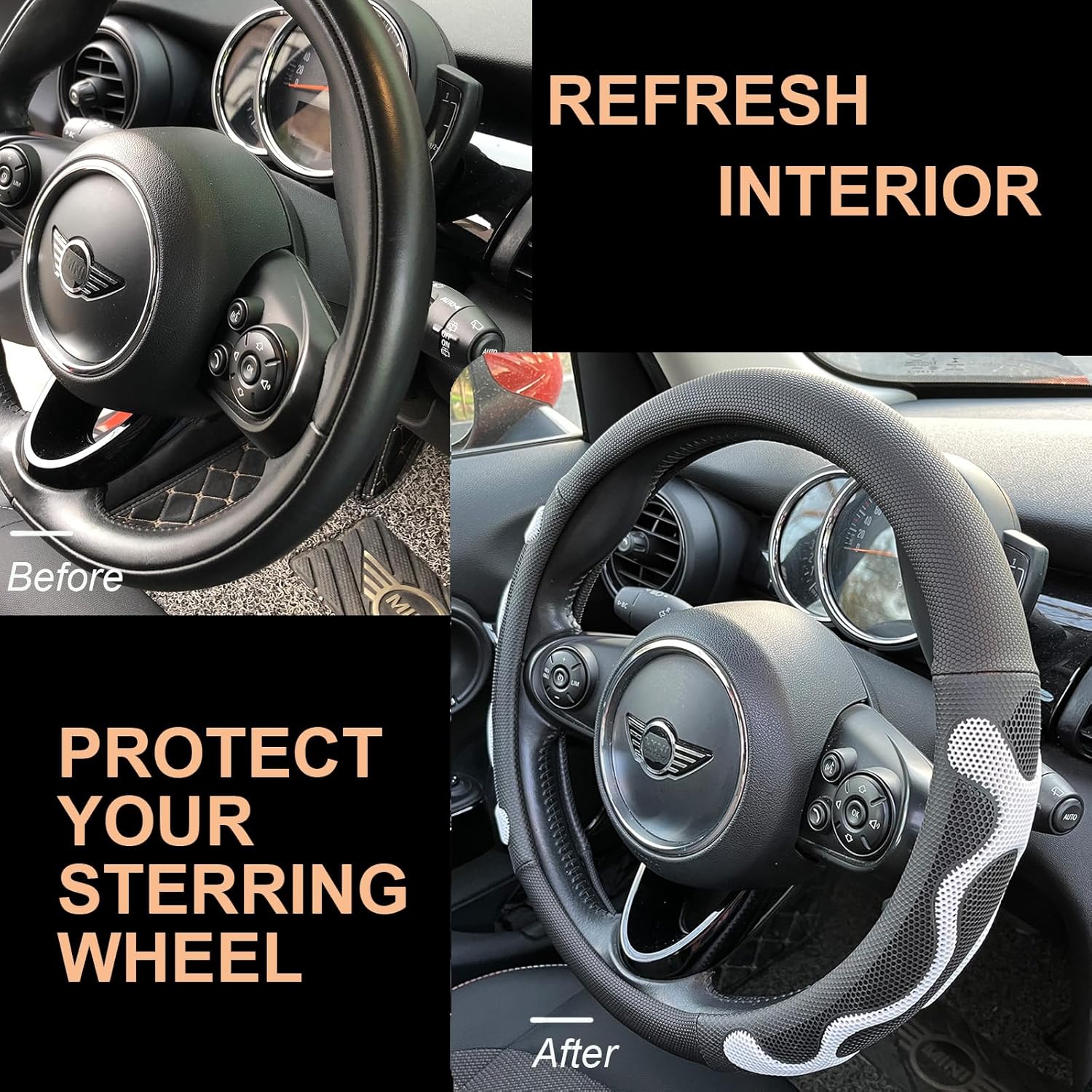- Installation Instructions: The PINCTROT steering wheel cover is designed to be flexible and snug-fitting. During installation, please exert some force to ensure a secure fit. In the case of some steering wheels with a larger grip circumference, we recommend choosing a size up for optimal installation.