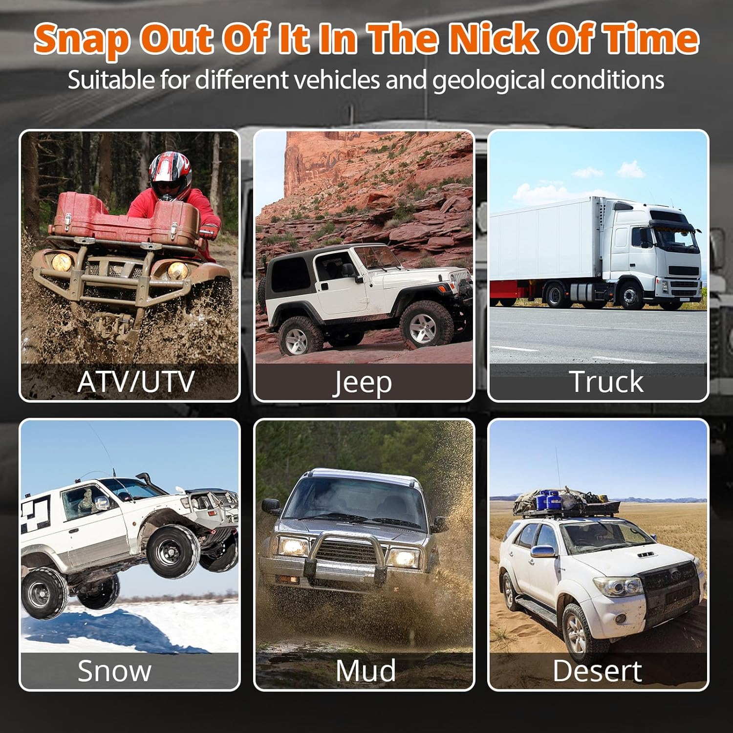 - 【Thicker Heavy Duty Elastic Straps Towing Gear】1INCH UPGRADE TO 1-1/8 INCH ROPE,more durable and higher strength.Actual tested and certified up to 48000LBS breaking strength.45% more efficient than wire winch ropes, storing four times the energy of a tow strap. Capable of recovering and towing vehicles of all sizes and types including Jeeps, SUVs, ATVs, trucks, tractors, pickups, small vehicles and more